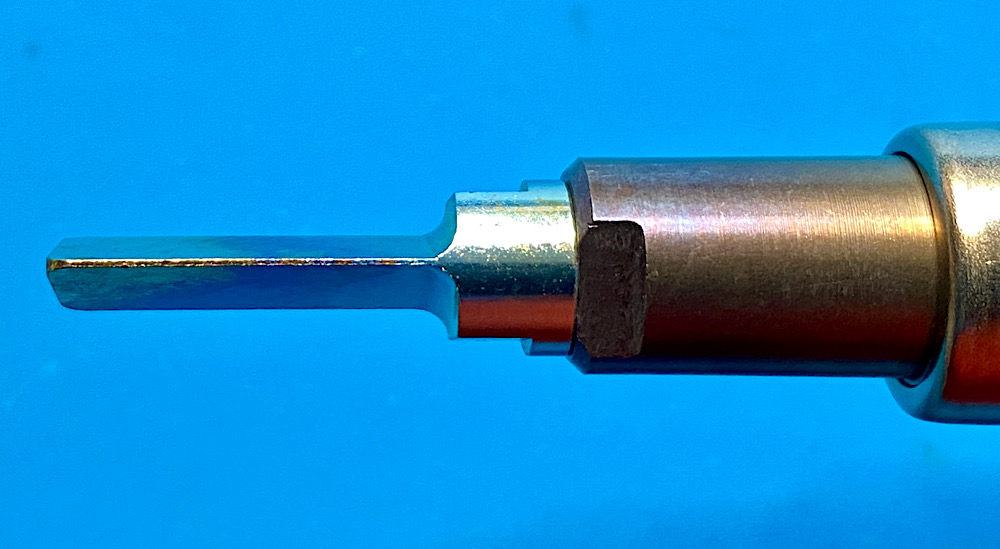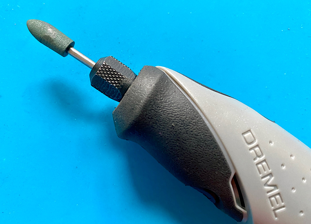 Feinarbeit mit dem Dremel Stylo, aufgesetzt ist die Hartgummi-Polierspitze.