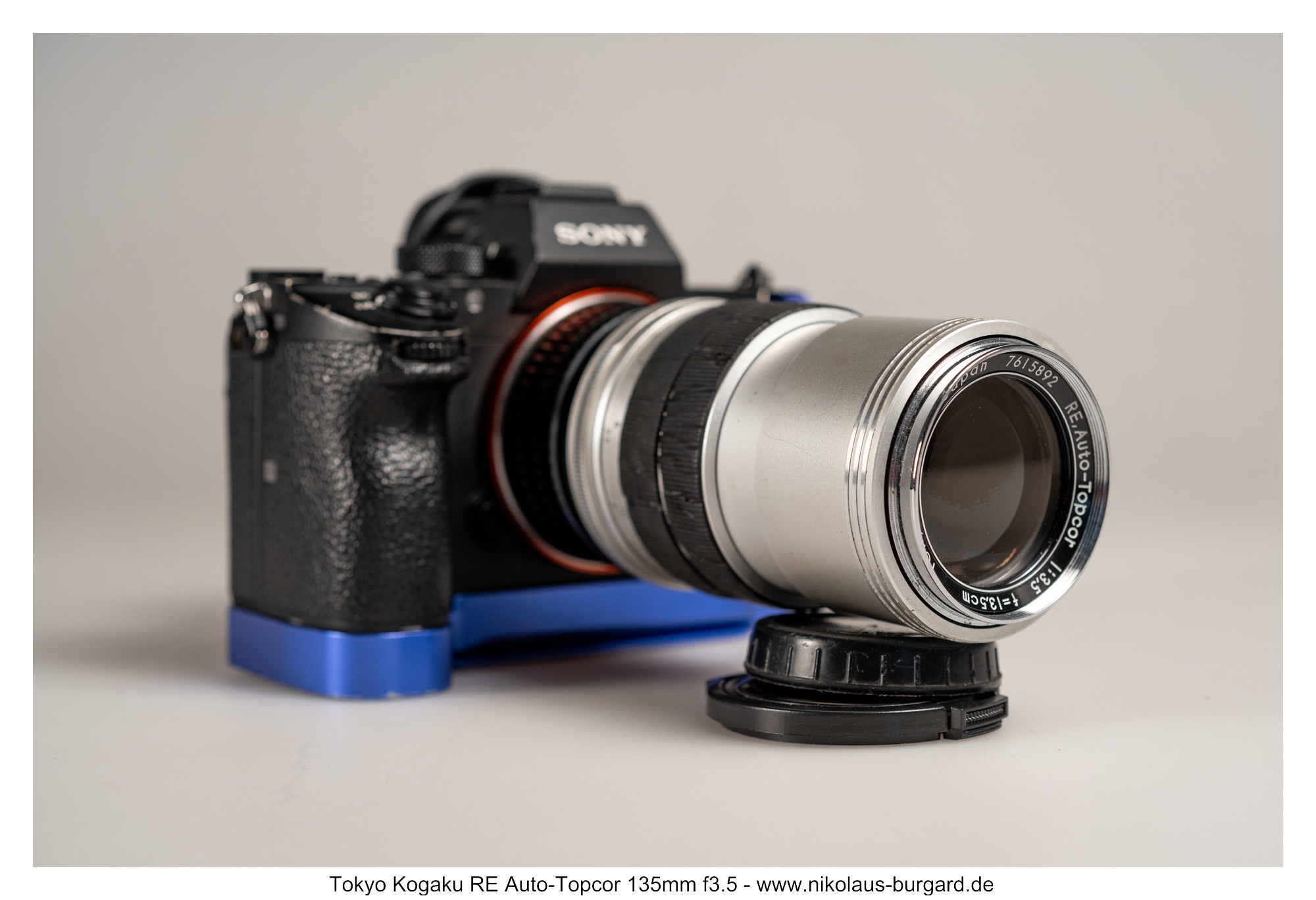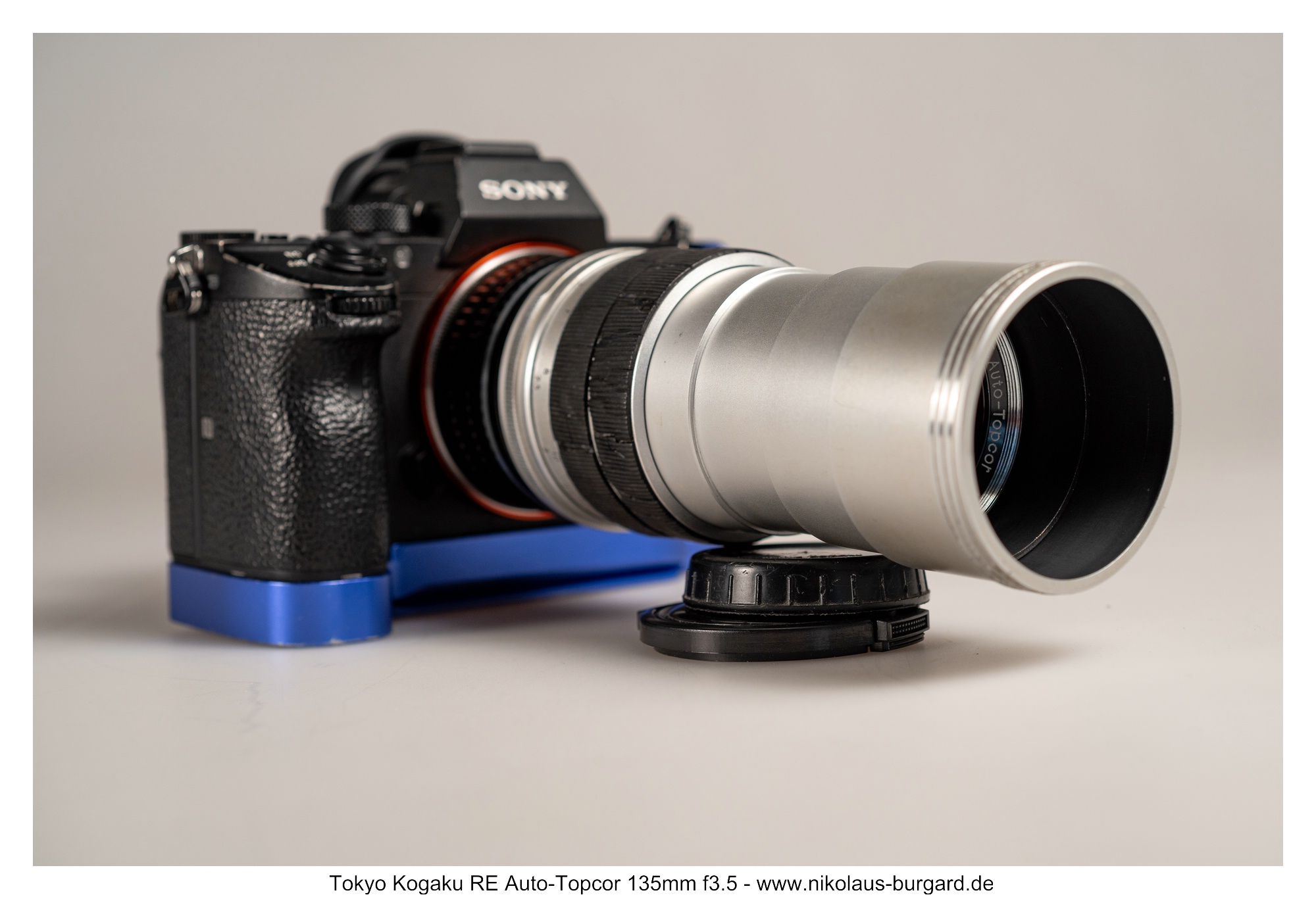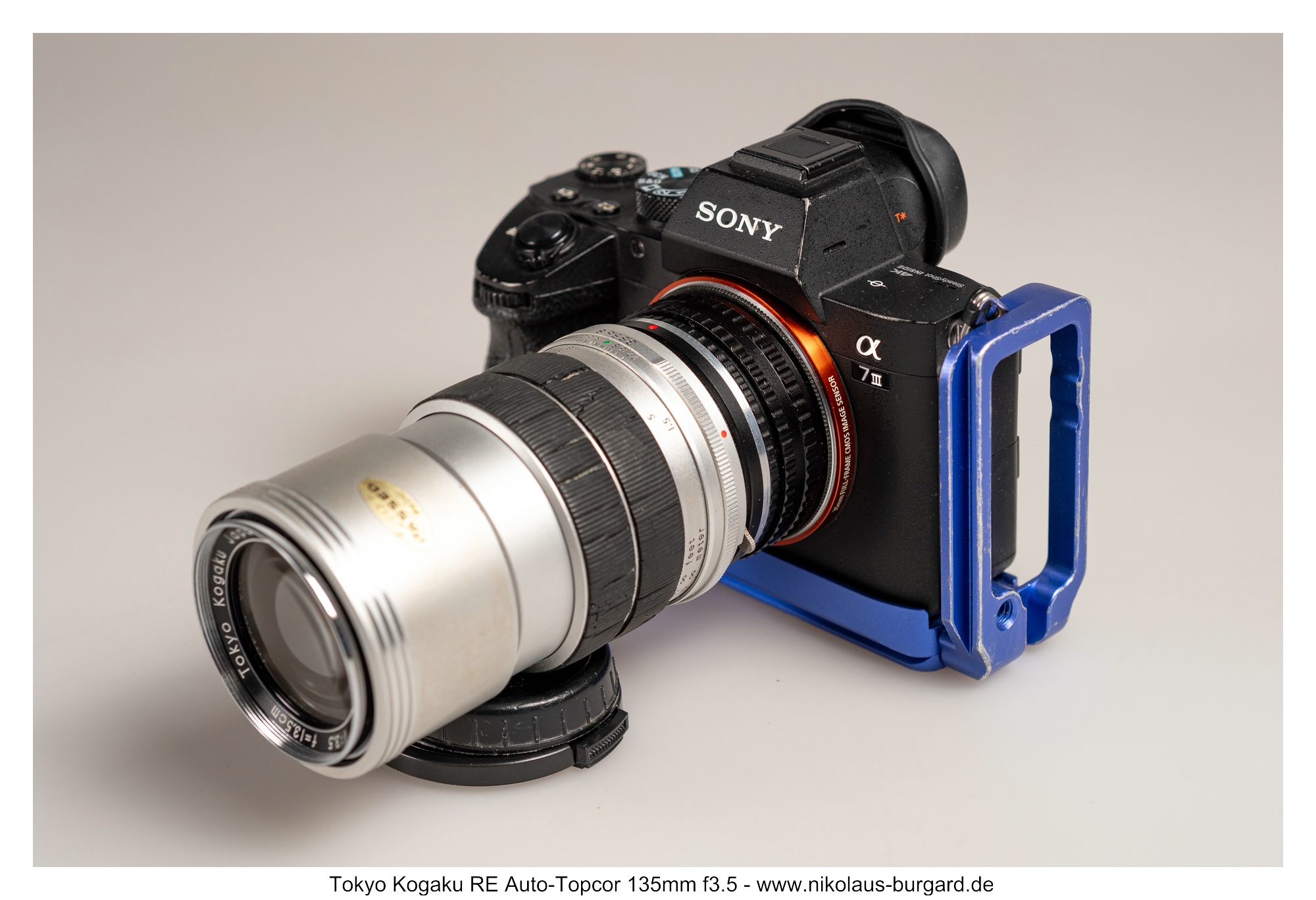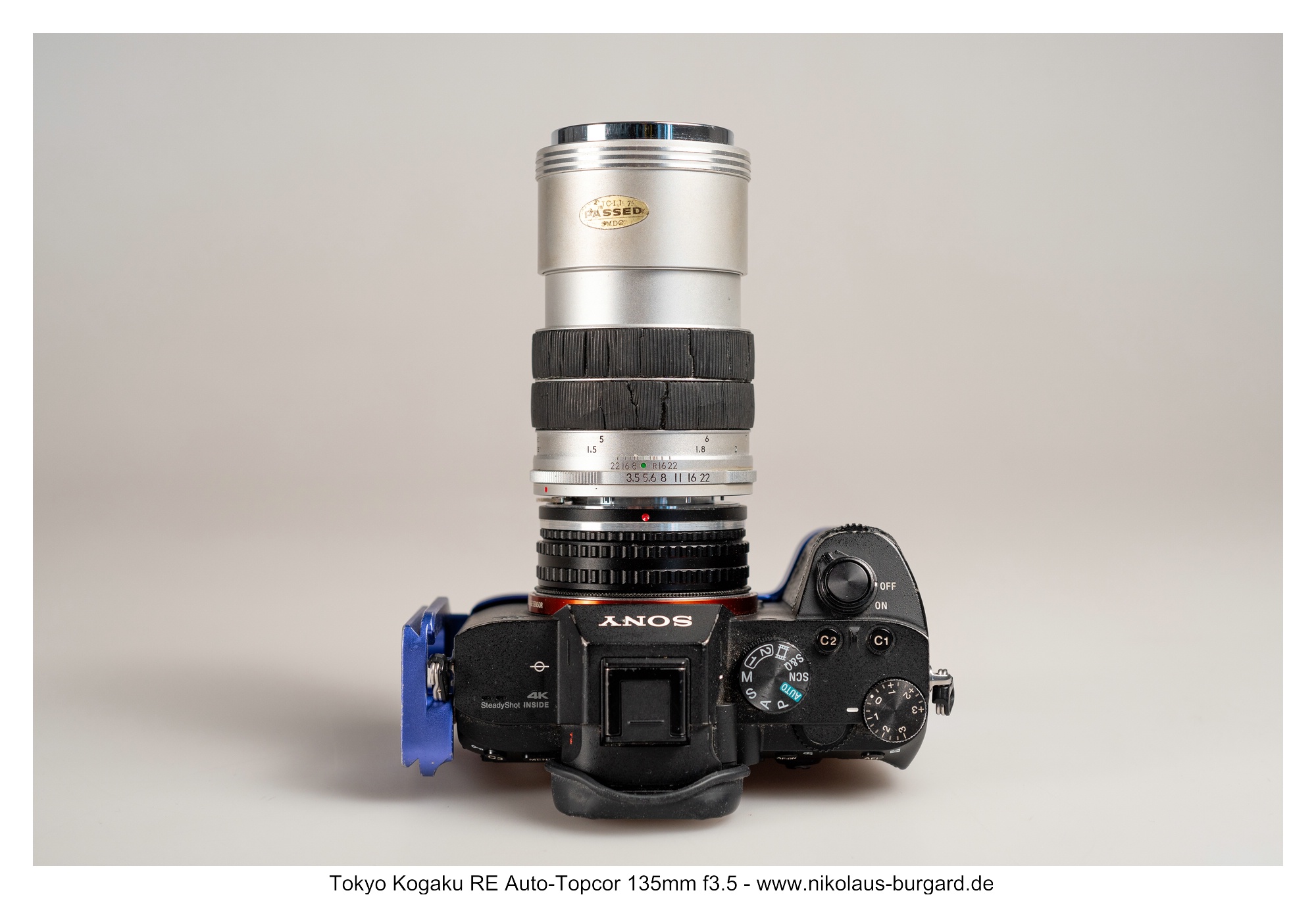 Ich adaptiere die Topcon-Objektive mittels eines von Hans-Jürgen Diener gebauten Helicoid-Adapters. Dieser besteht aus einem abgedrehten handelsüblichen Exakta-Adapter, der mit einem zusätzlichen M42-Helicoid verheiratet wurde und einem dünnen M42 auf Sony-E-Mount-Rückteil.