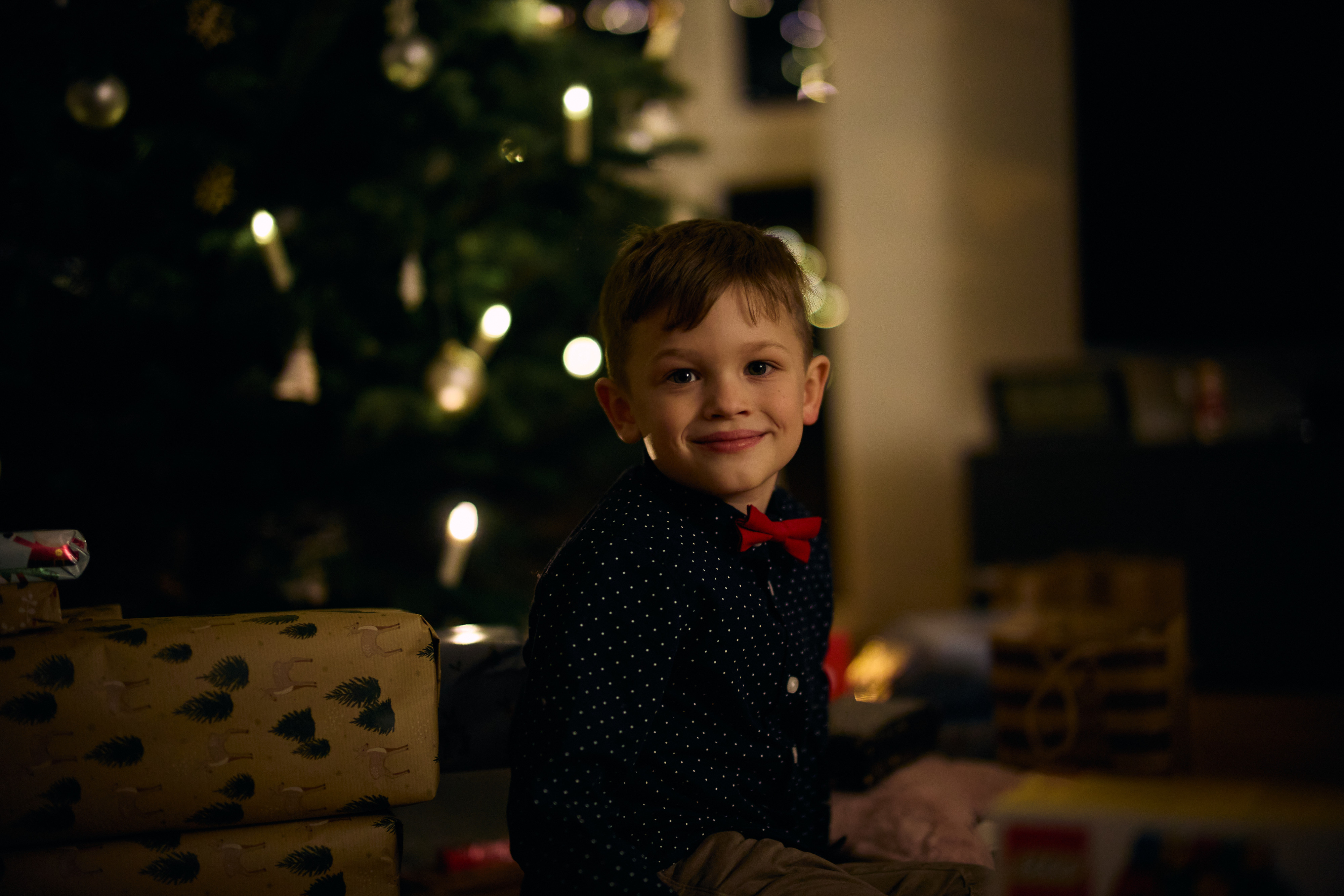 Ein Bild meines Sohnes kurz vor dem Auspacken seiner Geschenke bei den Großeltern.