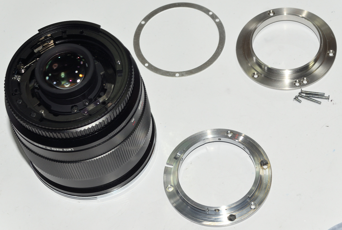 Das M42 Bajonett und den Unterlegring abzunehmen war einfach, es fehlte aber auch der Blendensteuerungshebel.