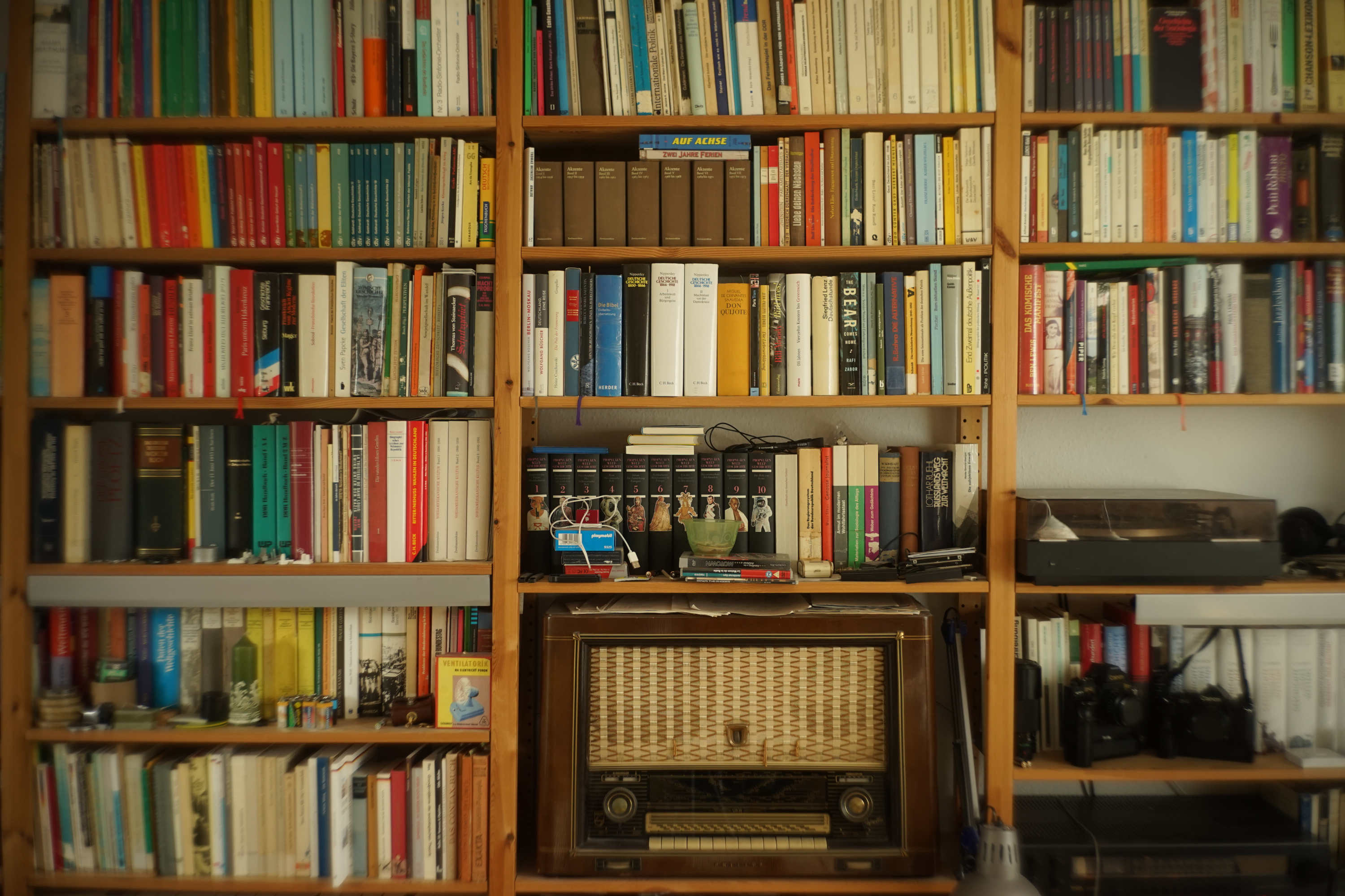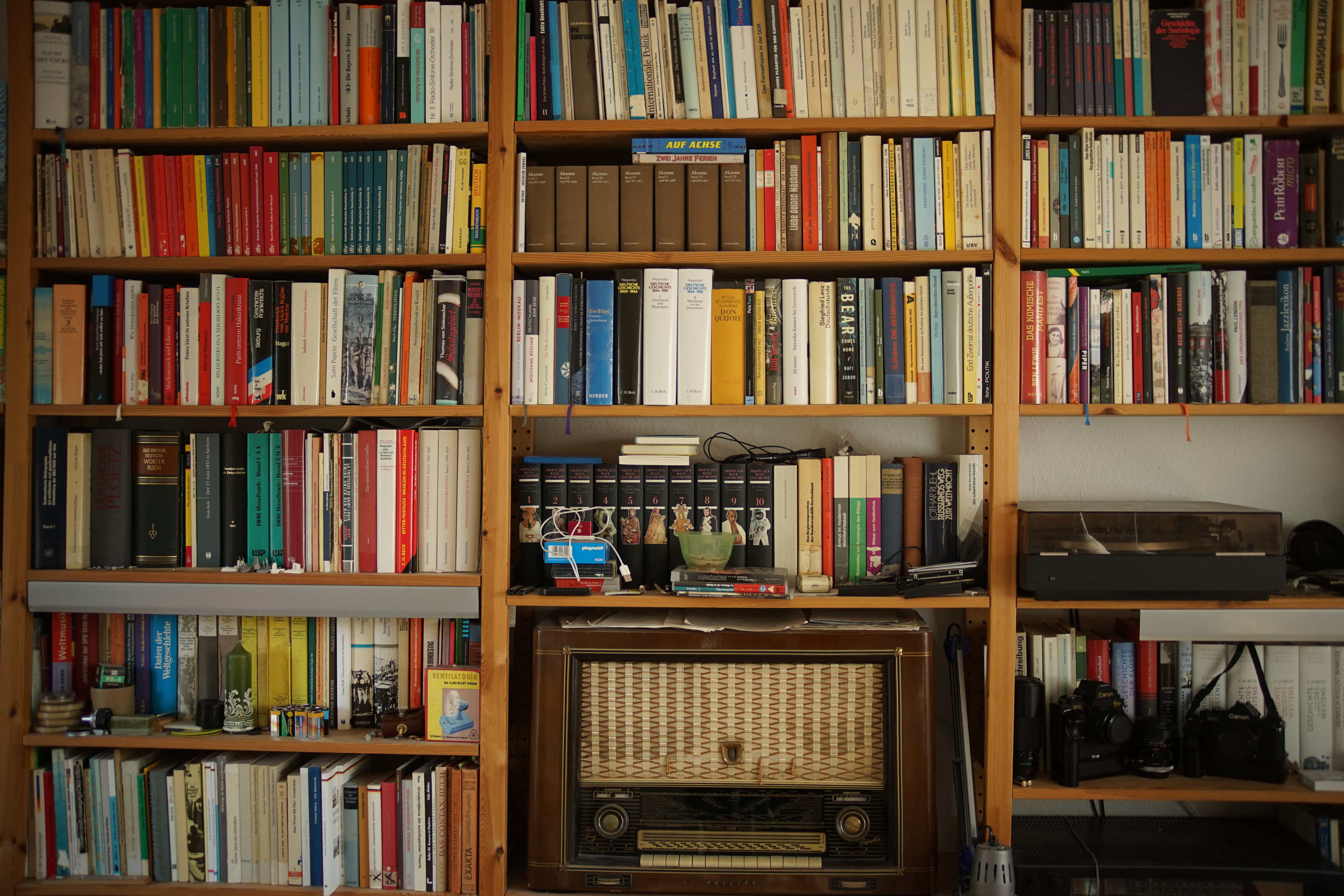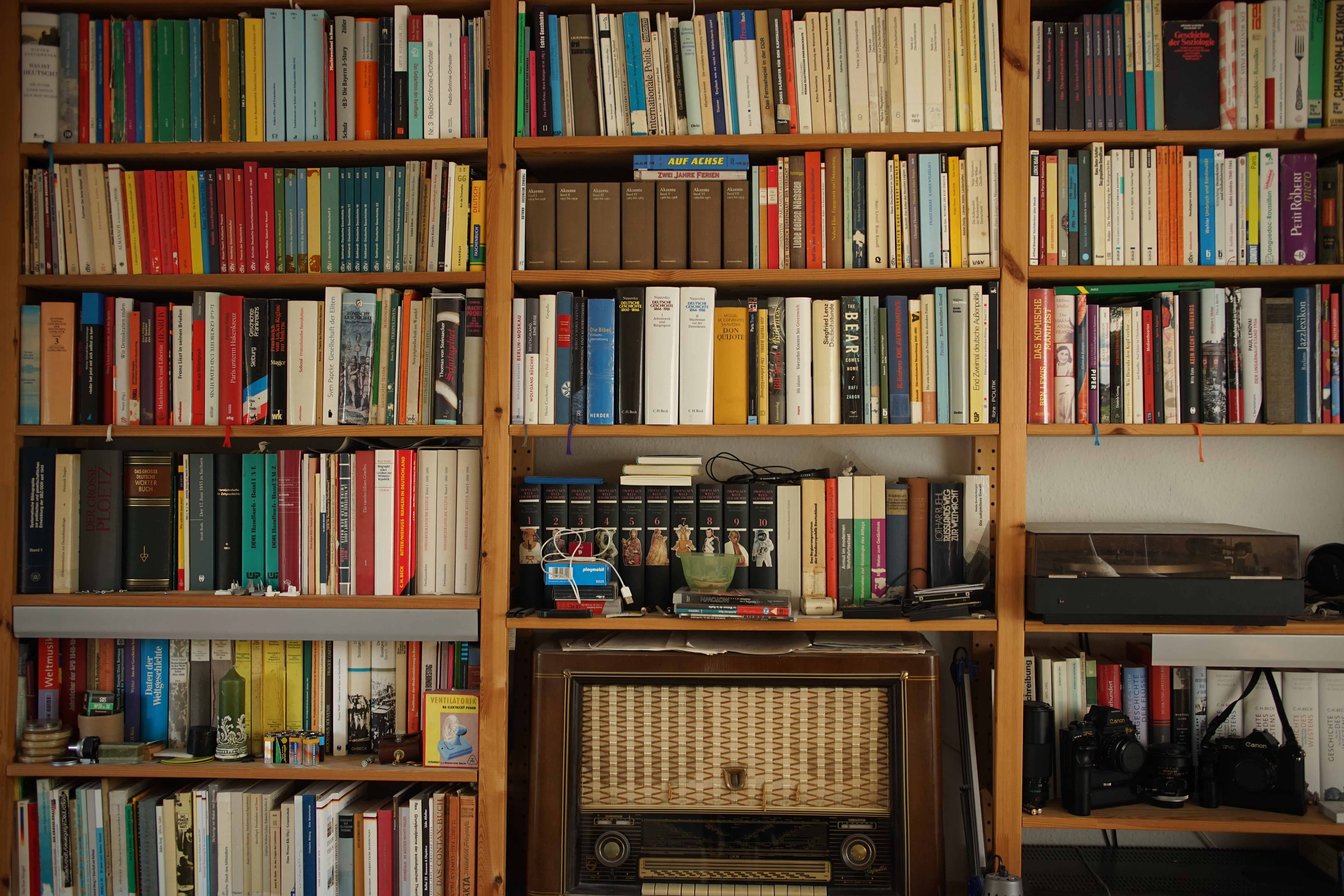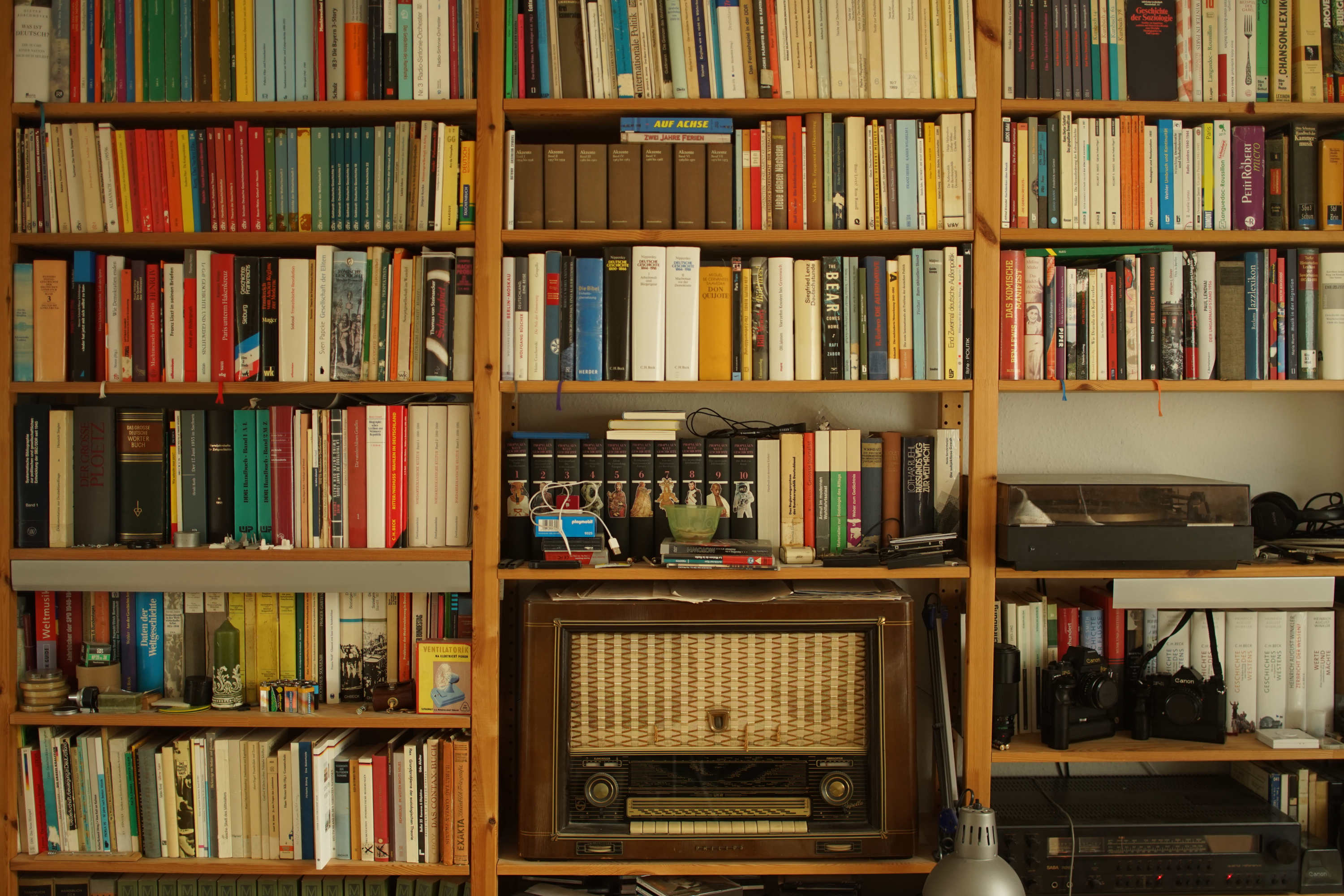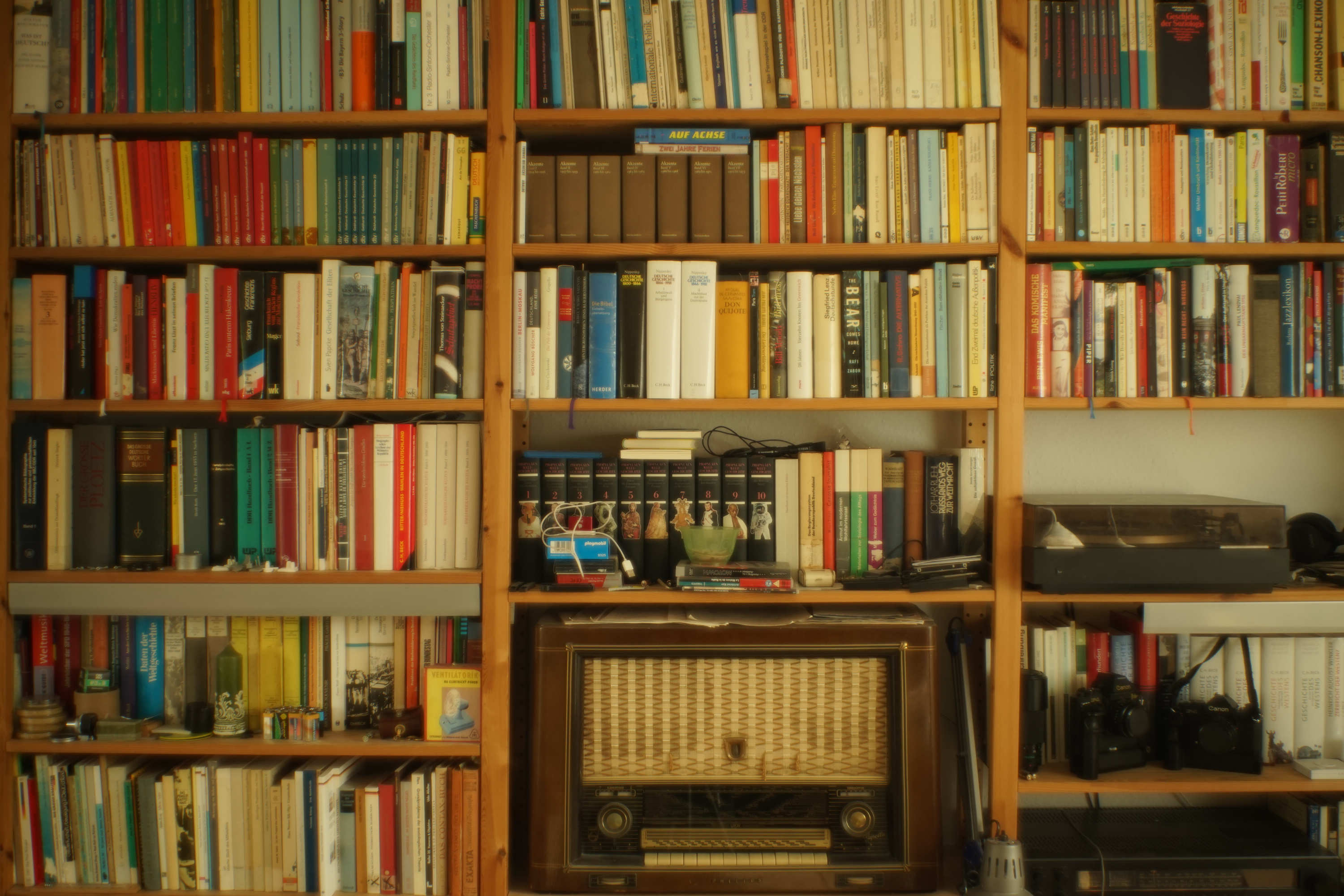 Das ungefähr ähnlich alte Canon TS - wie an den Sendernamen auf der Radioskala zu sehen, fast - fast - so scharf wie das Zeiss, etwas wärmer in den Farben:
