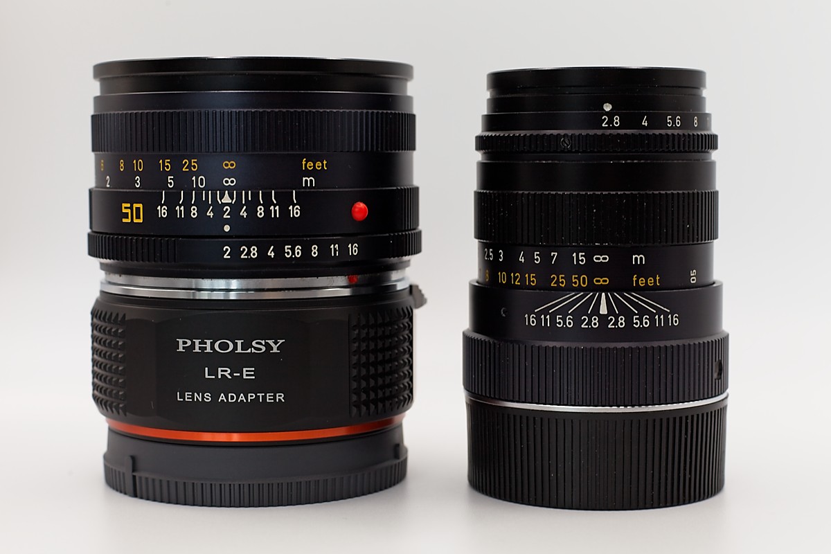 Schon „nackt“ ist das 90mm-M viel zierlicher als das 50mm-R (in natura noch mehr als hier dargestellt):