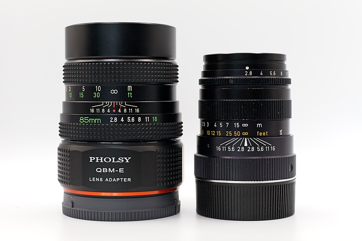 Selbst das Rolleinar-MC 2.8/85mm, das von der Brennweite und Lichtstärke her ähnlich ist und eigentlich zu meinen „Leichtgewichten” gehört, wirkt ziemlich wuchtig gegen das Elmarit: