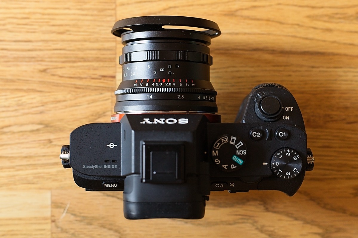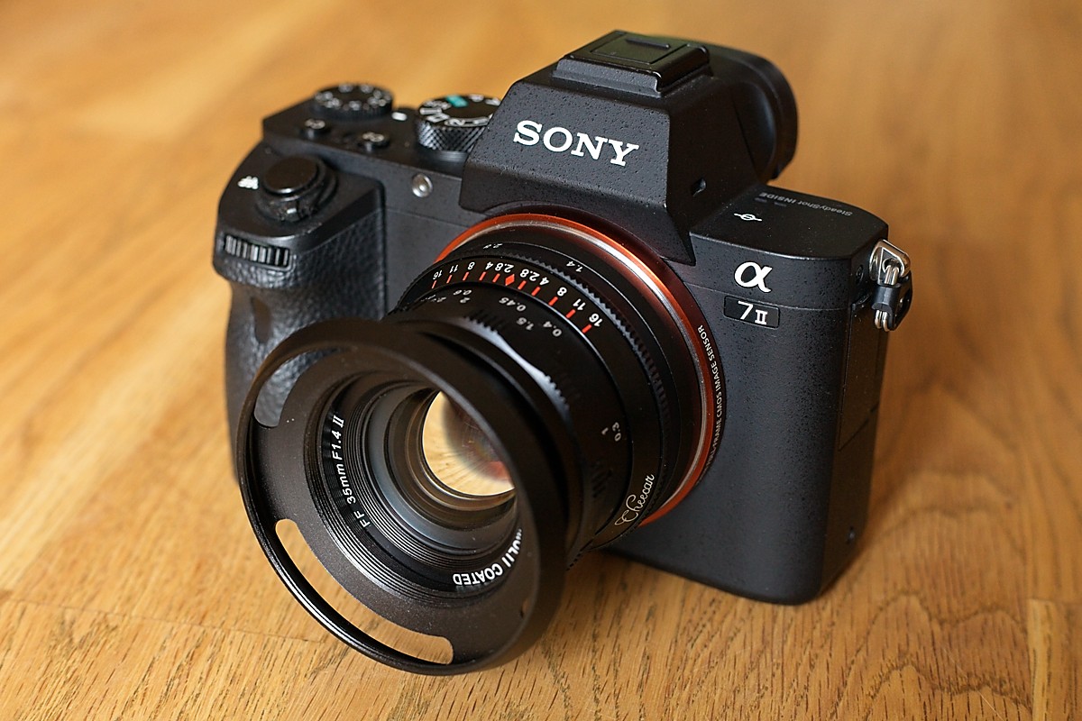 Der erste Eindruck ist, vor allem angesichts des Preises, erstaunlich gut: Das Objektiv ist komplett aus Metall, und anders, als ich es beispielsweise von einem 7Artisans-Objektiv kenne, gibt es keine Elemente, die wackeln oder Spiel haben. Alles grundsolide. Zudem ist es für ein lichtstarkes 35er schön kompakt, auch mit der mitgelieferten Streulichtblende. Der optische Eindruck:
