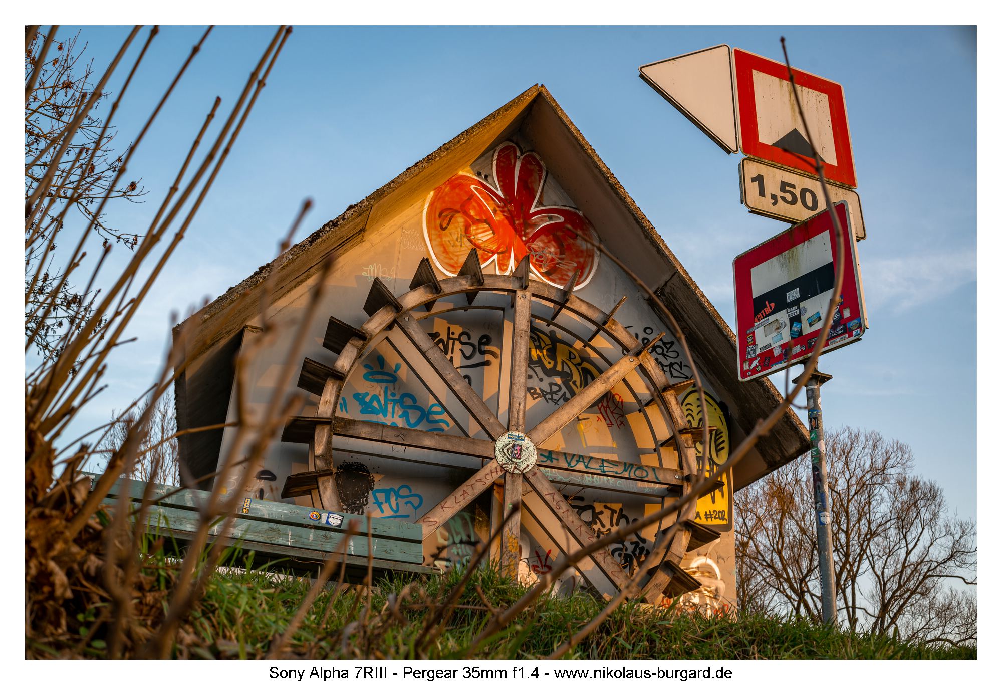 Ich nutze im Grund immer zwei Presets, die ich mir mal erstellt habe, eines für Schwarzweiß, das andere mit hochgezogenen Kontrasten und reduzierten Farben. Welches jeweils zum Einsatz kam, sieht man ja sofort. Blende jeweils irgendwo zwischen 2,8 und 5,6; ich habe es nicht nachgehalten. Es ging mir wirklich nur um erste Praxisimpressionen (und man sehe mir den Humor des zweiten Bildes nach :D) …