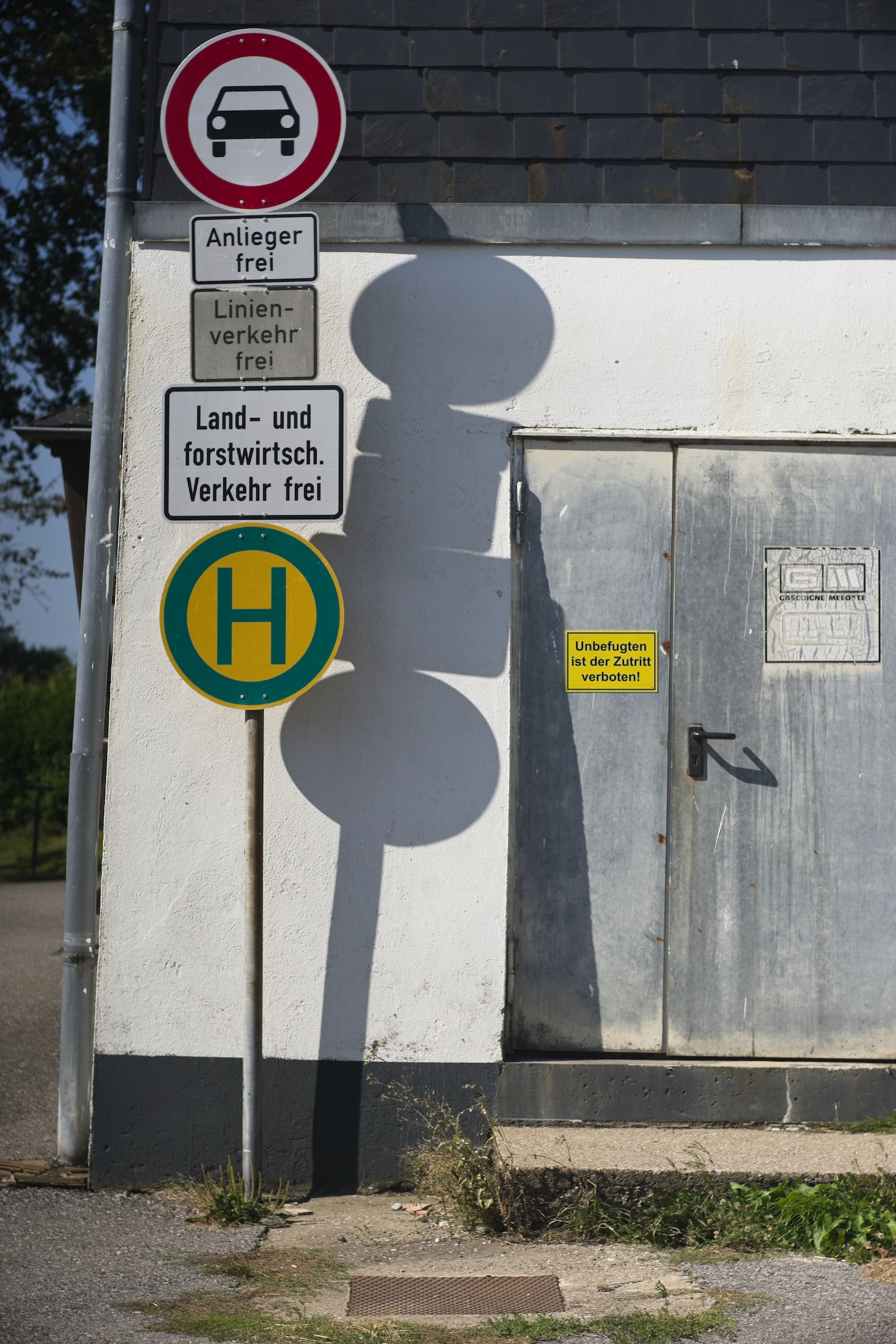 Und als Schmankerl noch eine typisch deutsche Spezialität: Eine Weggabelung mitten im Nirgendwo, aber tausend Verbotsschilder …
