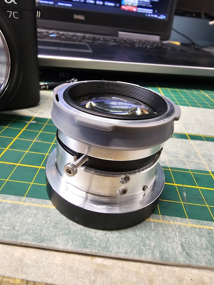 Theoretisch ließe sich das Gehäuse mit etwas mehr Toleranz drucken und der Linsenträger ein Stück aus dem Gehäuse herausziehen. Eventuell werde ich noch eine weitere Version konstruieren, mit der genau dies möglich ist.