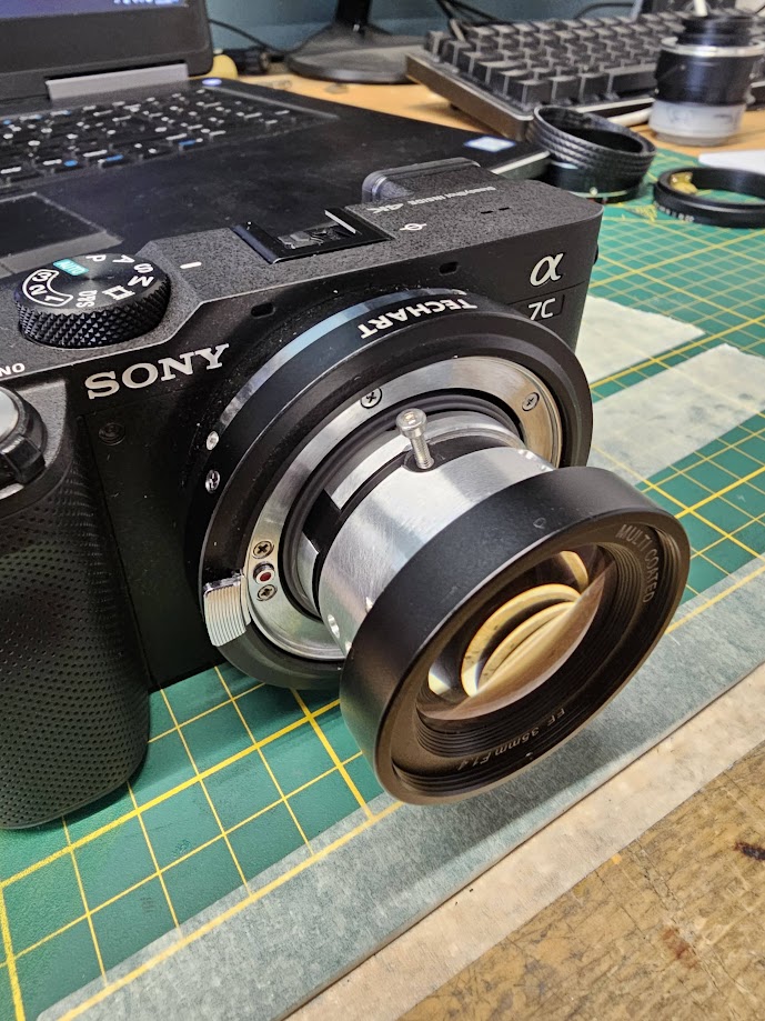 Das von mir angepeilte 35mm Objektiv hat mit dem Sony-E Bajonett ein Auflagemaß von 18mm. Ein M42 Objektiv hat z.B. ca 45.5mm. Beim M42 Objektiv ist also noch genug Platz, um innerhalb der 45mm einen Adapter zu platzieren.