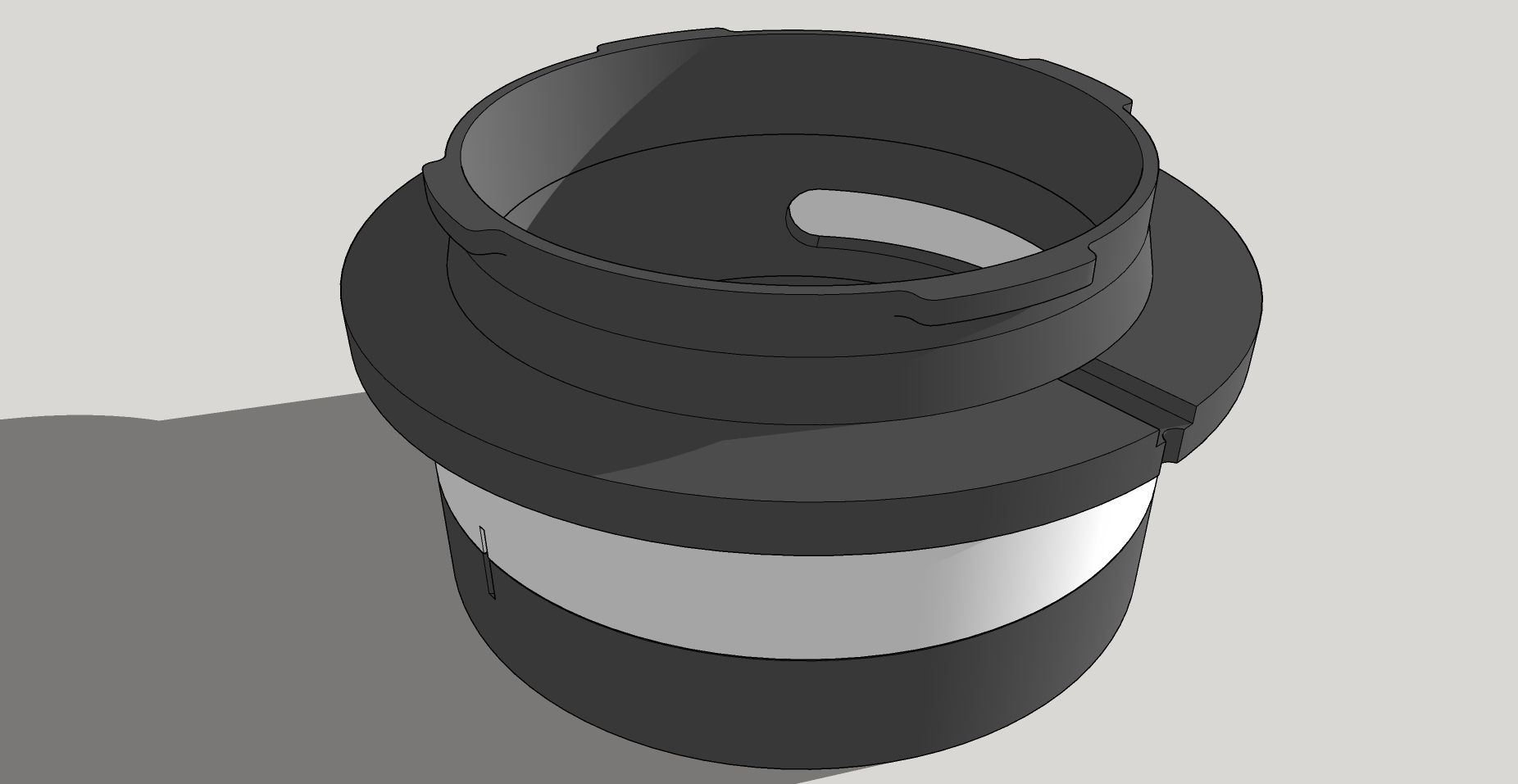 Das Bajonett habe ich aus ASA-Kunstoff mittels 3D-Druck hergestellt. Das passt nun ganz stramm über das Alu-Gehäuse.