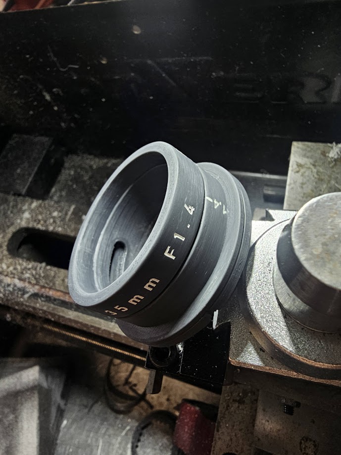 Ich bin dann dazu übergegangen, den Linsenträger bis auf ein minimum abzudrehen und zu verkleinern, um ein neues Gehäuse drumherum konstruieren zu können.