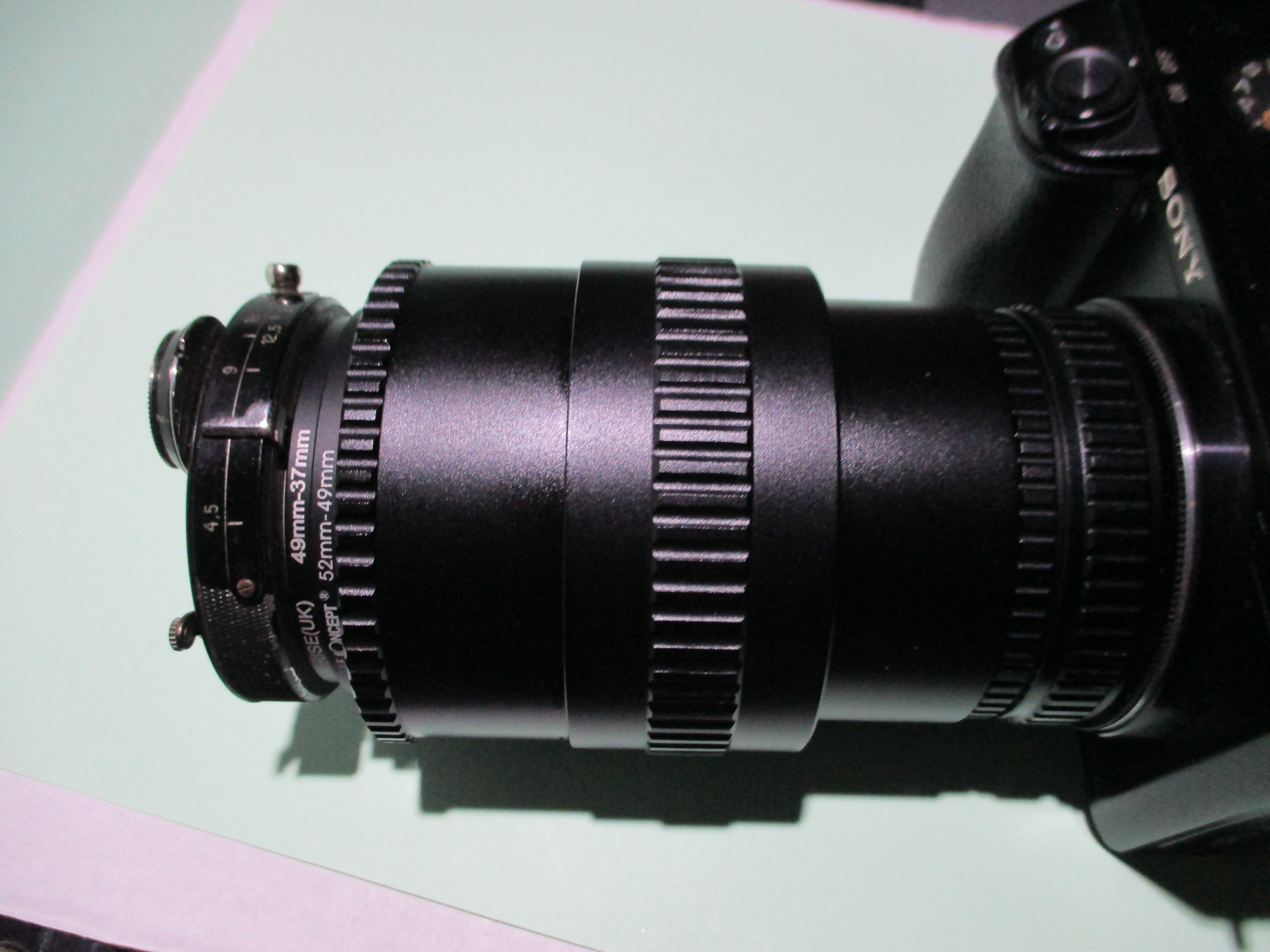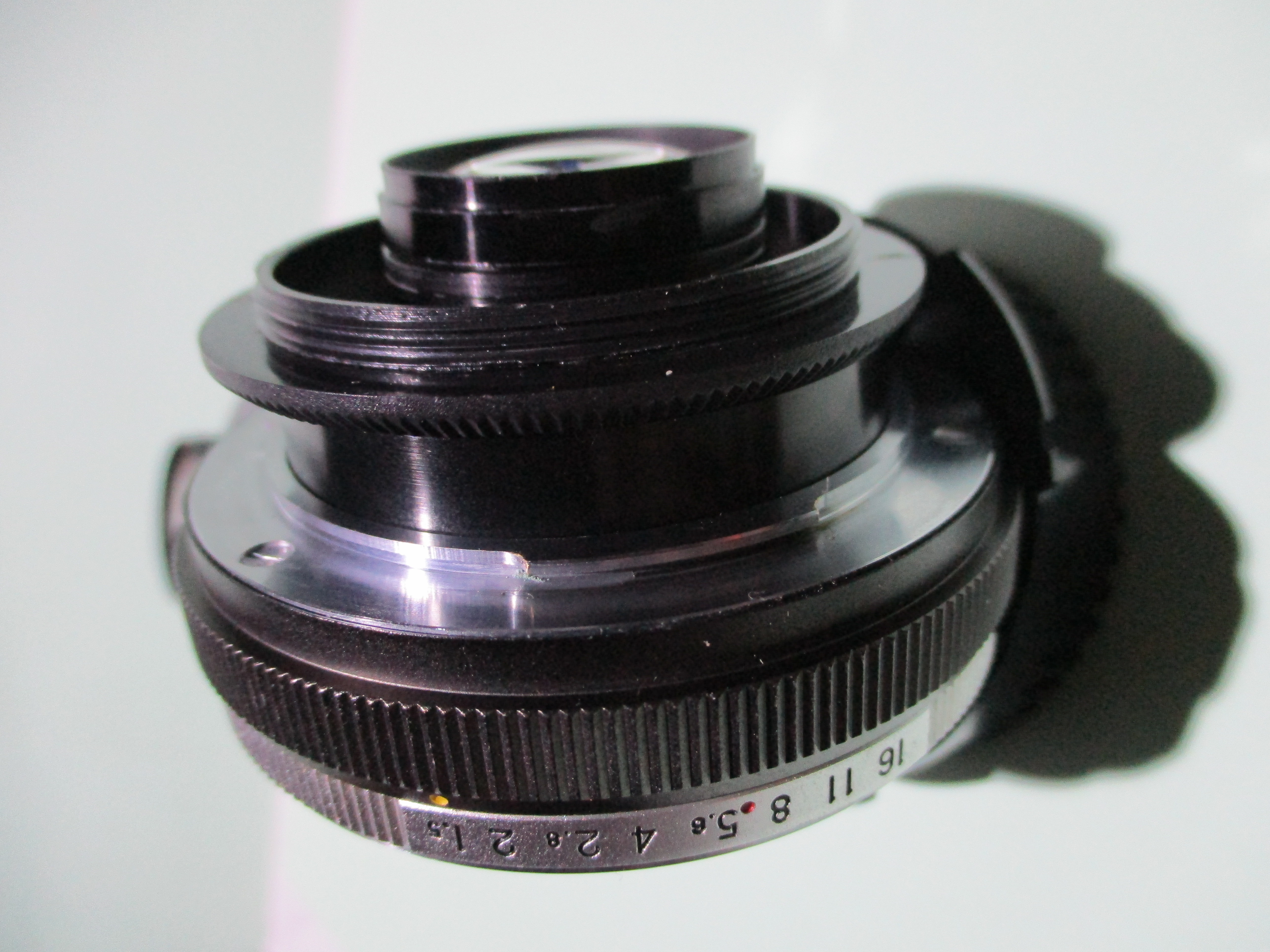 - Adapter von M42 auf M65, da die meisten Adapter für die notwendigen Linsen-Gewinde auf M42 enden.
