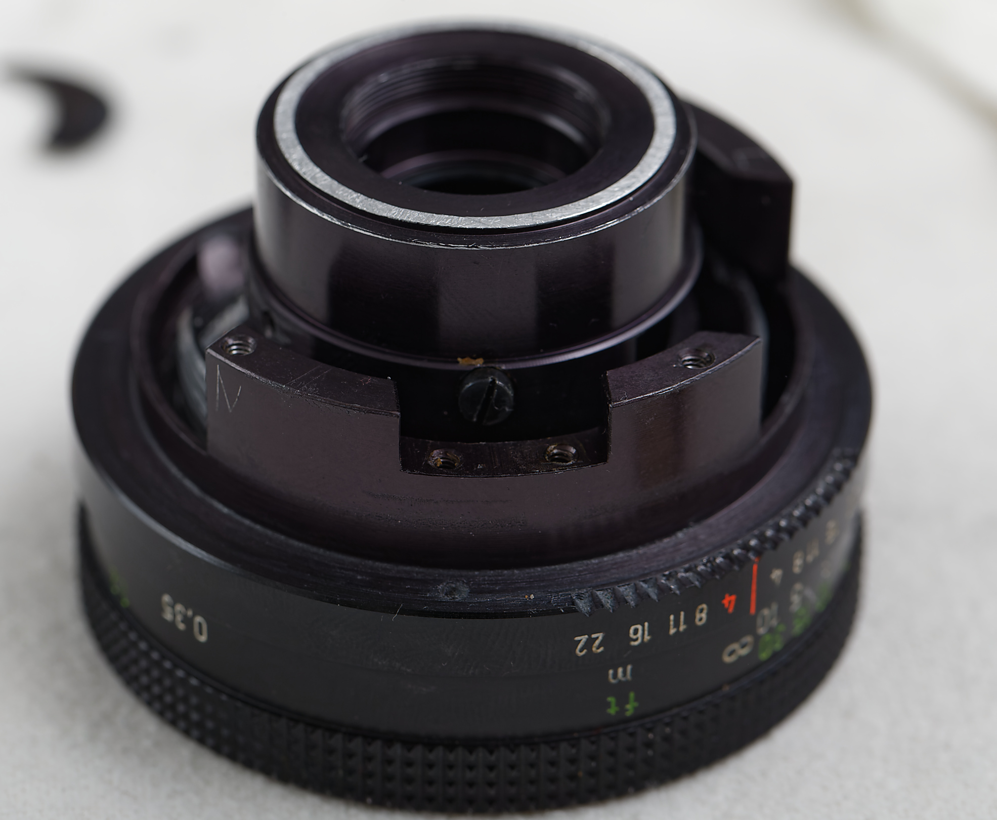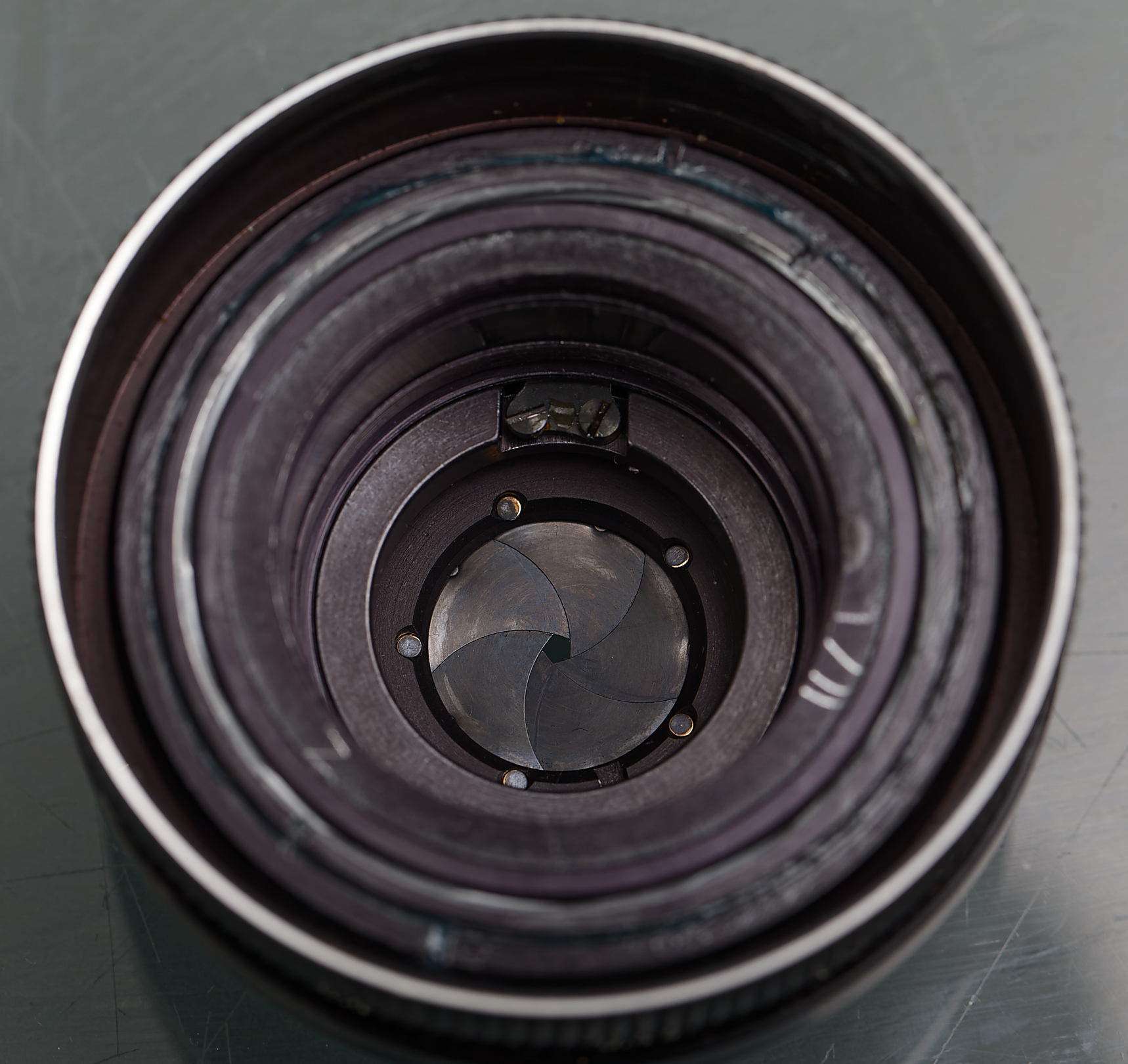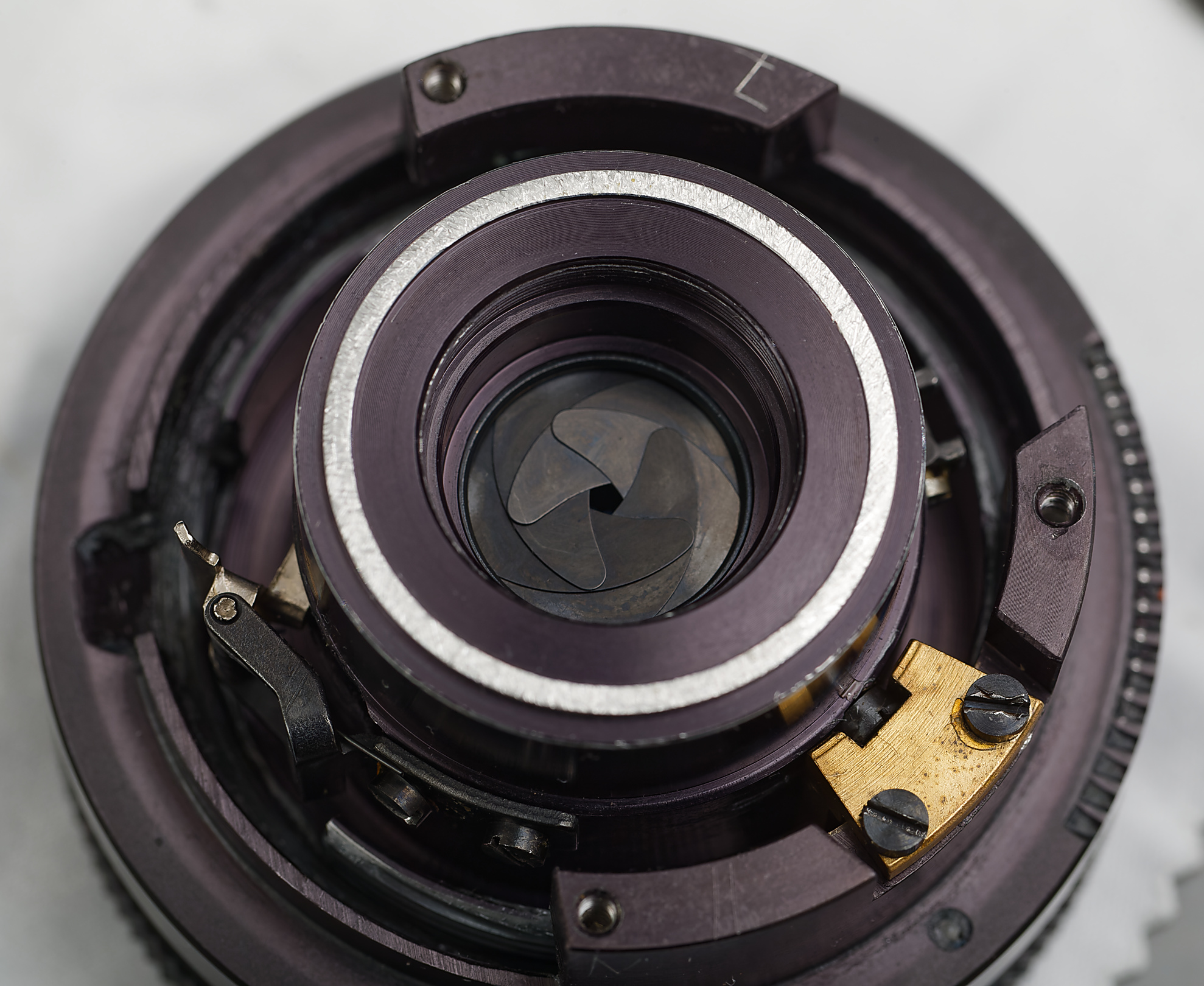 Das Objektiv war bereits einmal auseinandergebaut worden. Ich vermute, dass der Reparateur am Einsetzen