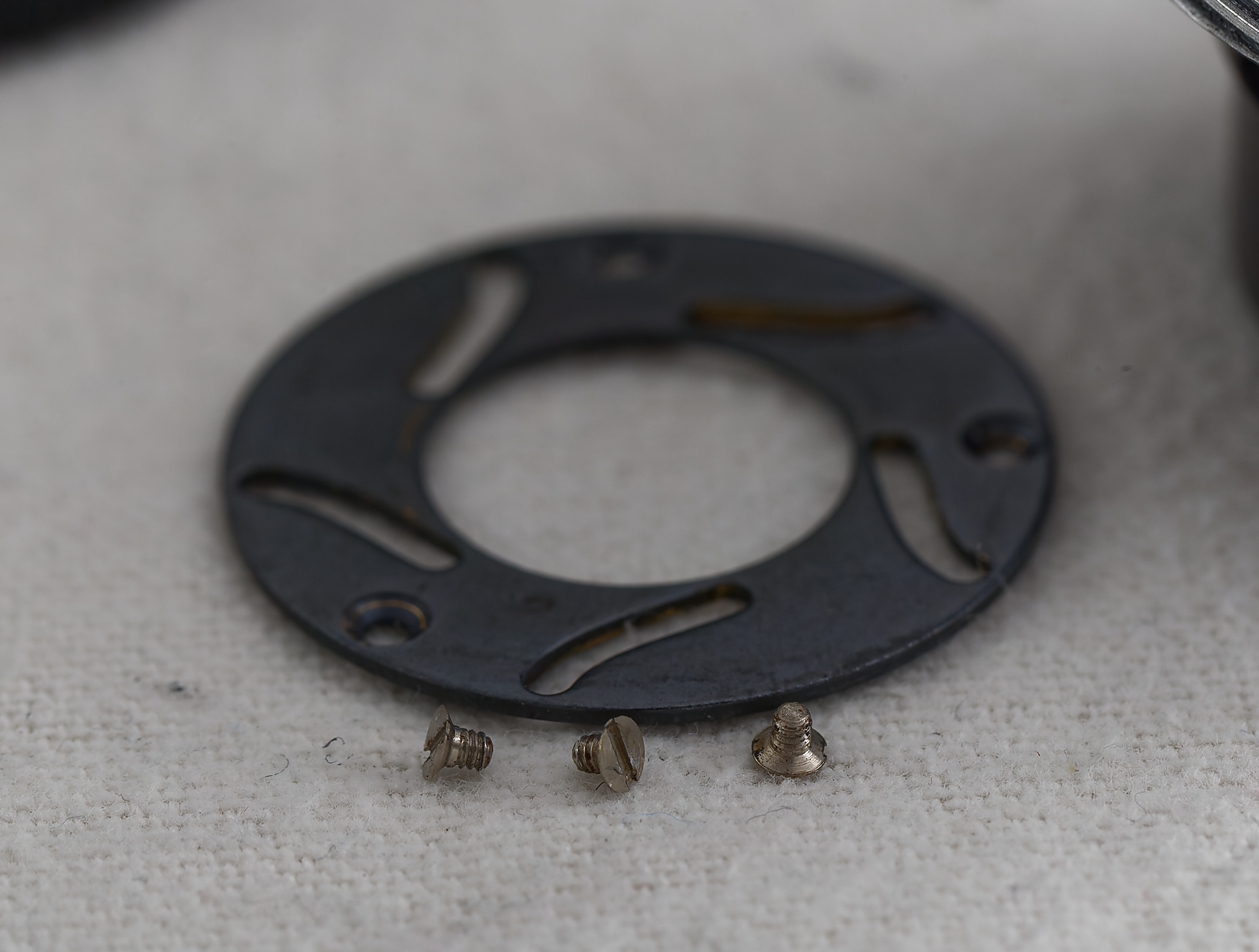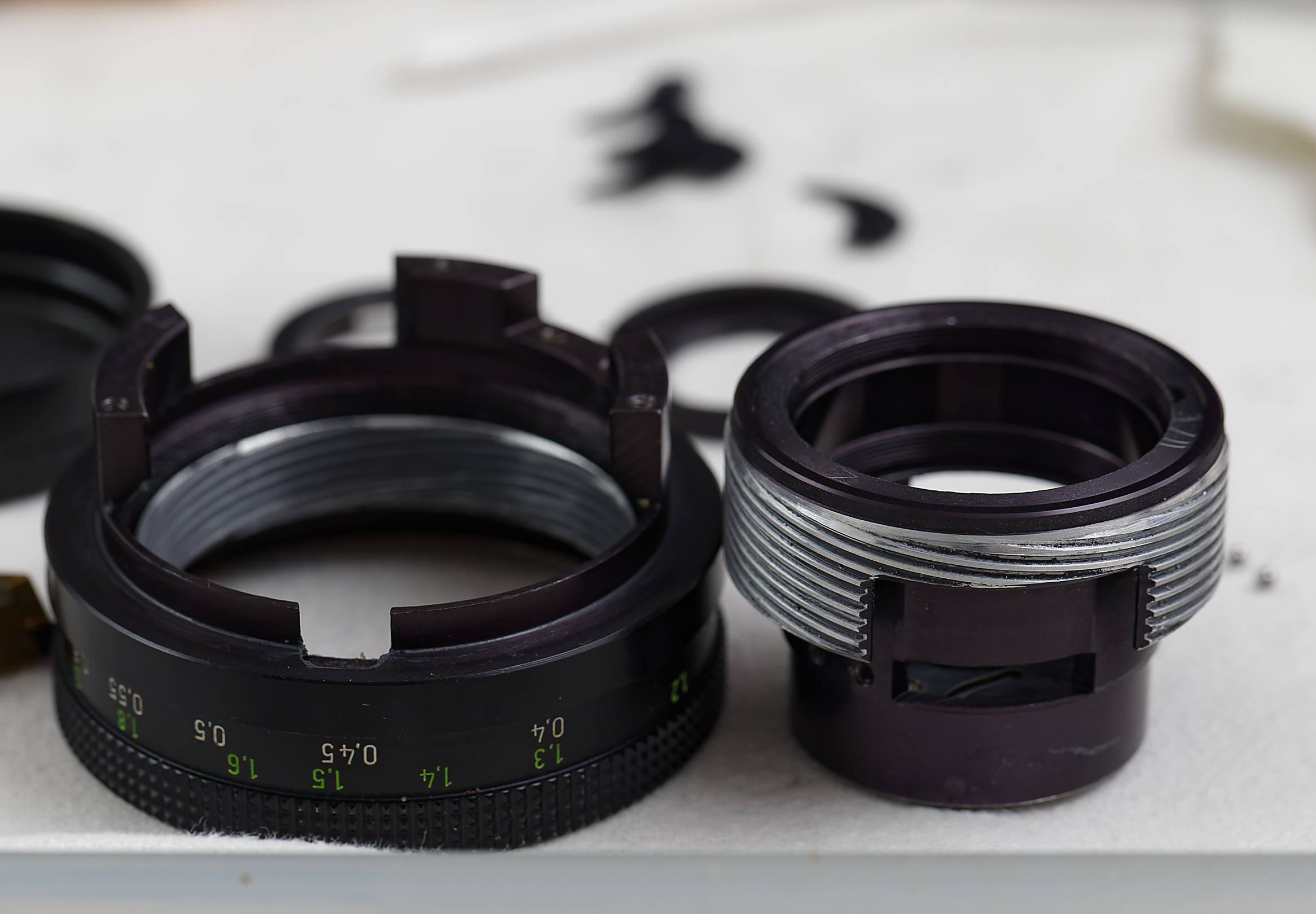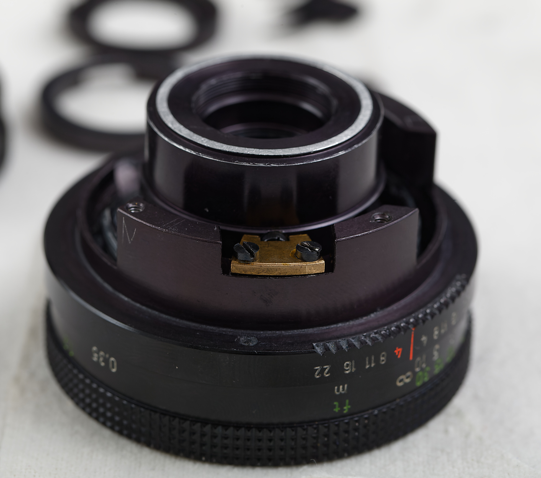 Das Objektiv war bereits einmal auseinandergebaut worden. Ich vermute, dass der Reparateur am Einsetzen