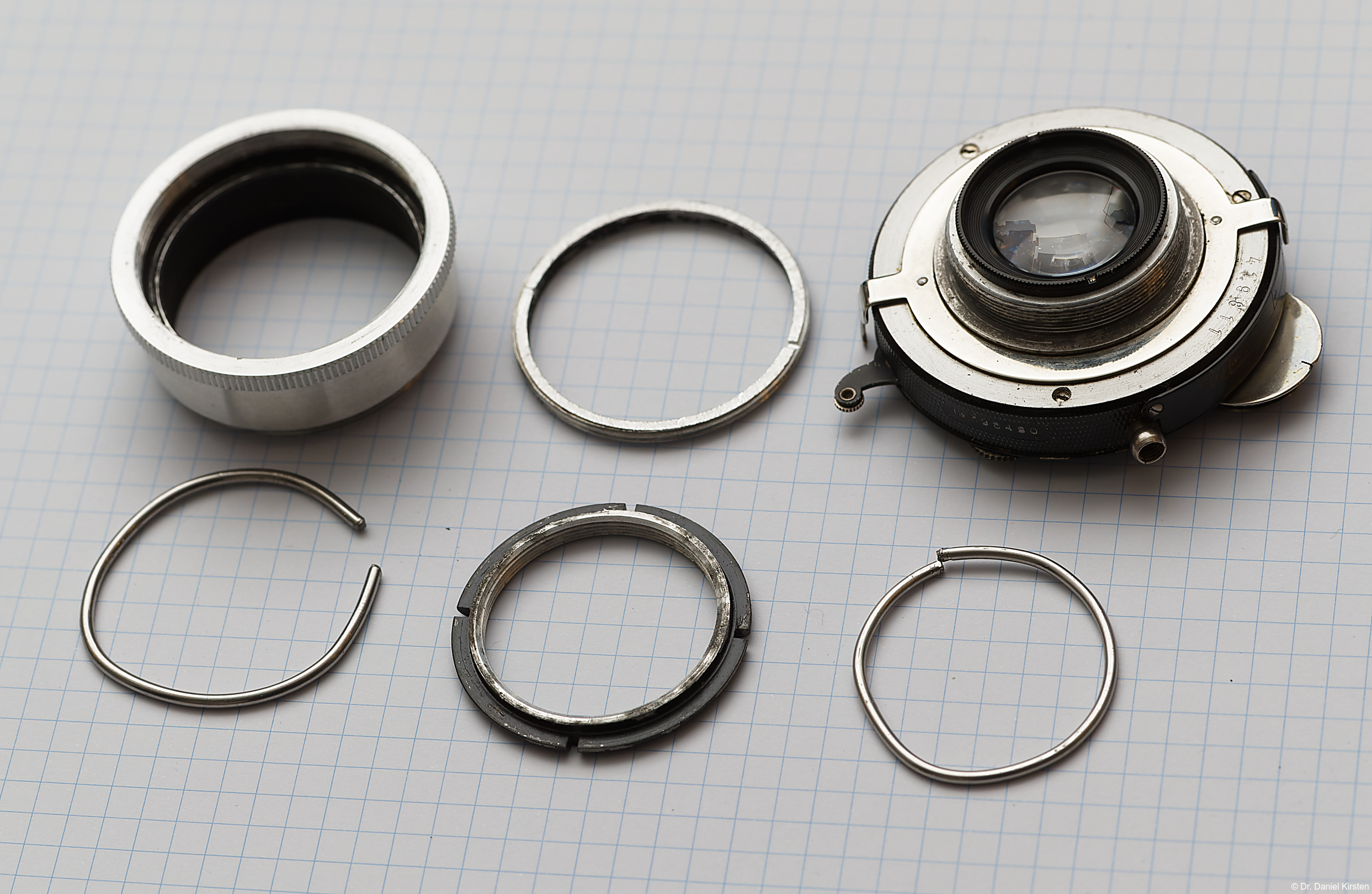 COMPUR-Verschlusses und zwei Abstandsringe, die ich aus alten Fahrradspeichen