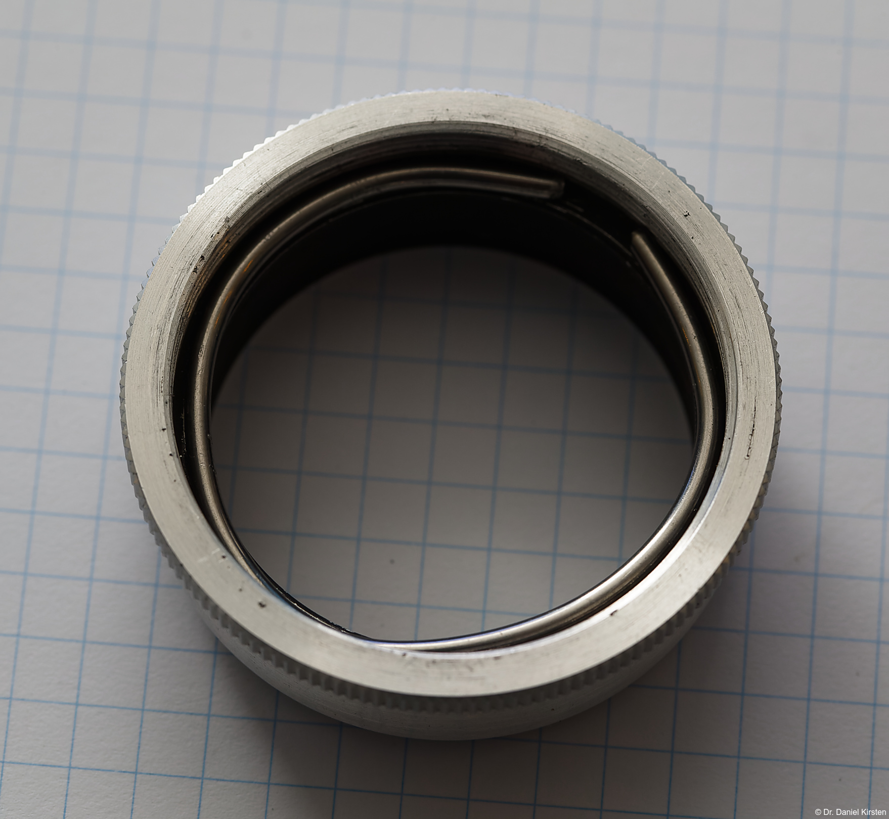 Darüber kommt die Mutter des Verschlusses, die dann mit dem Gewindering festgeschraubt wird.