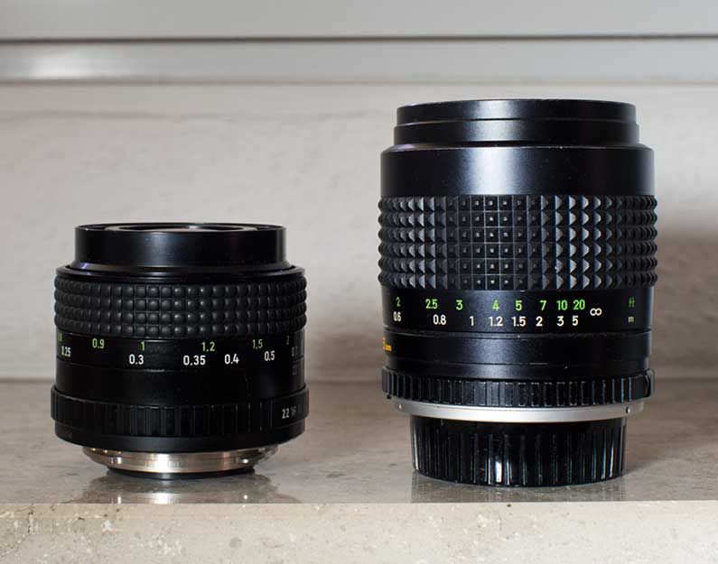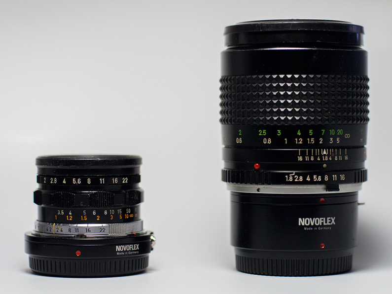 hier mal ein Größenvergleich zwischen dem CANON und dem Minolta. Beide 35mm, eines hat Lichtstärke 2.0, das andere Lichtstärke 1.8.