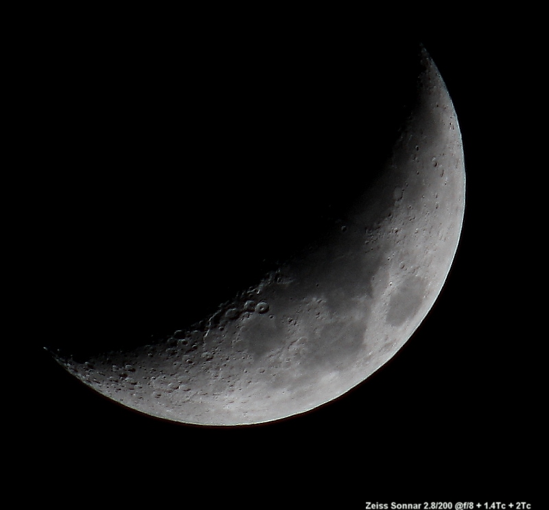 Wollte mal sehen was das 2.8/200mm Sonnar aus dem Mond machen kann, hab da aber mit zwei TCs nachgeholfen