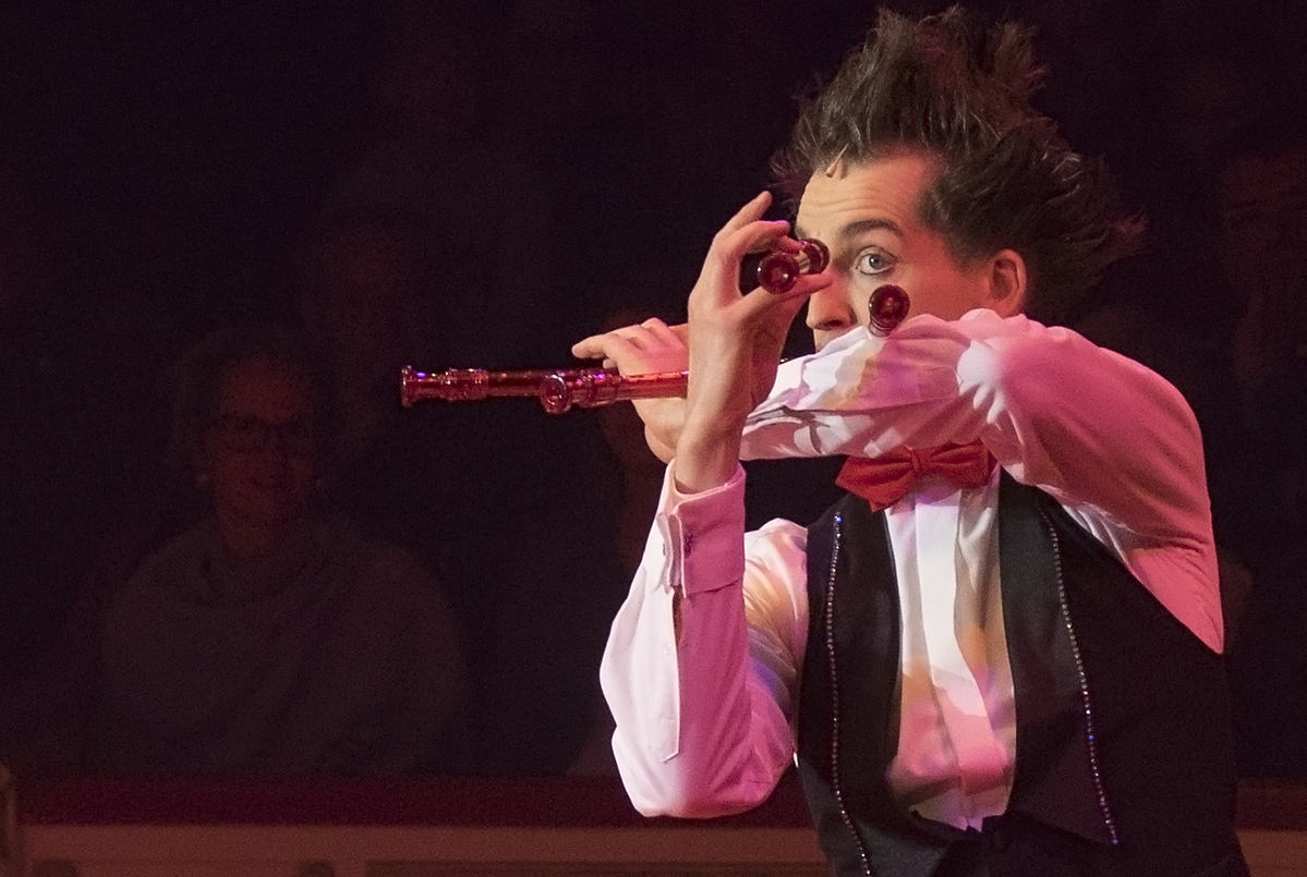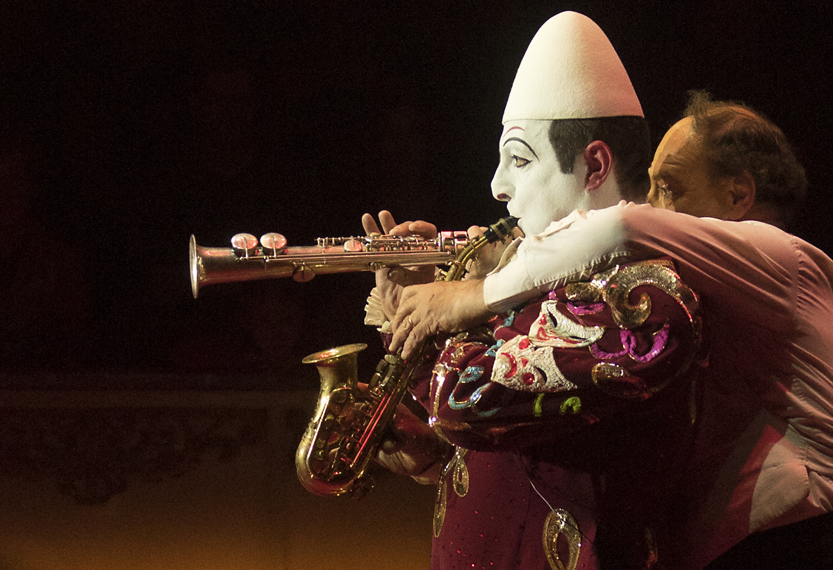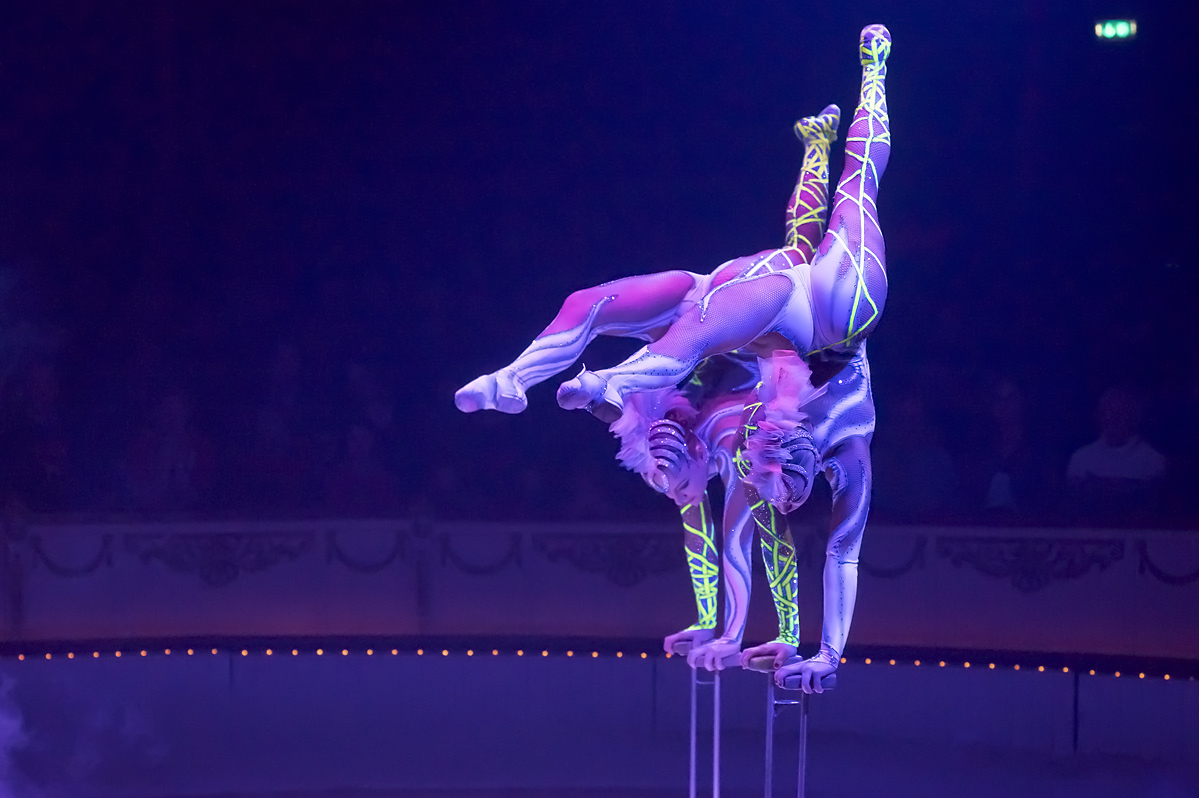 Gerade bei solchen extremen Lichtverhältnissen, wo die Künstler und Akrobaten sehr oft mit reflektierenden Dingen an Kleidung und "Gerät" hantieren, sind heftige Überstrahlungen durch die auf sie gerichteten weißen "Spot" - Scheinwerfer bei Offenblende zu erwarten... nicht so beim DIGITAR...