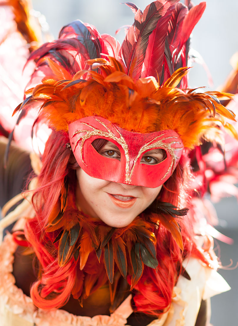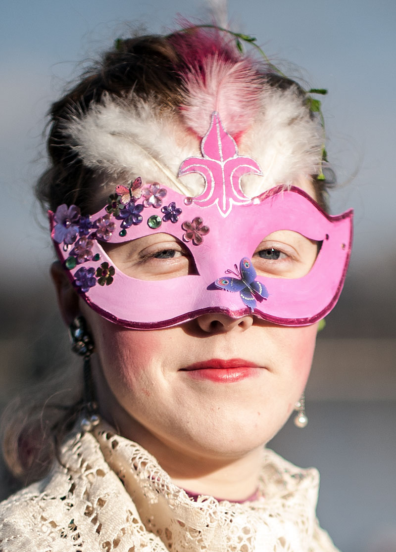 Auch der düstere Himmel im Hintergrund passt sehr gut und hebt die Maskendame noch mehr hervor.