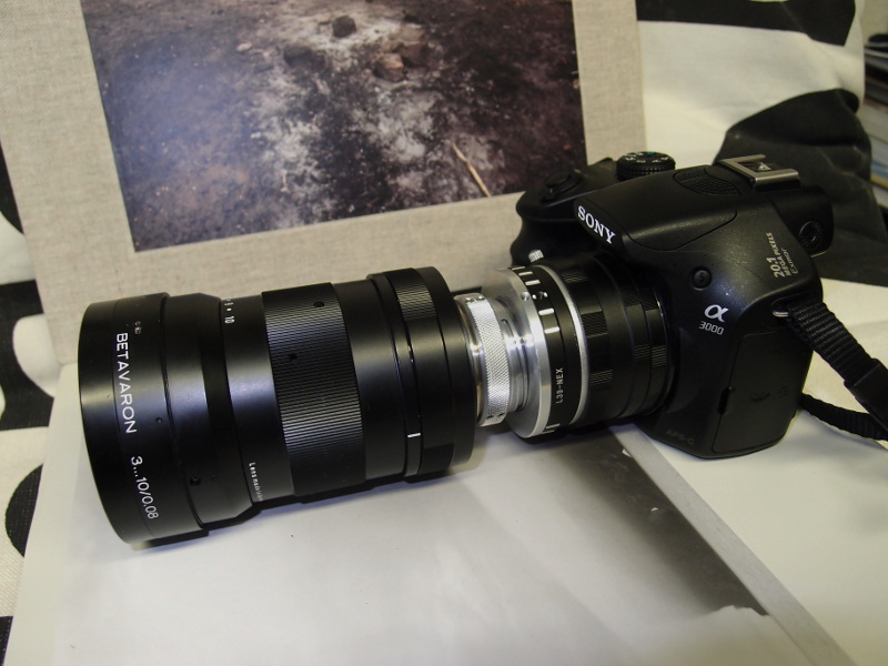 VNEXuni an Nex-5n mit umgedrehten Rogonar-S und insgesamt 50mm Tubus zwischen Objektiv und Kamera. Hatte noch etwas Probleme mit wohl aus internen Reflexionen resultierendem geringen Kontrast. Mal gucken ob ich die noch weg bekomme.