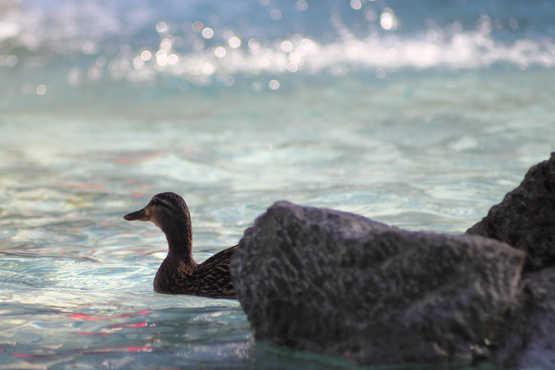 Offenblende, Diese Entenmama hat 3 Junge in einem Springbrunnen aufgezogen