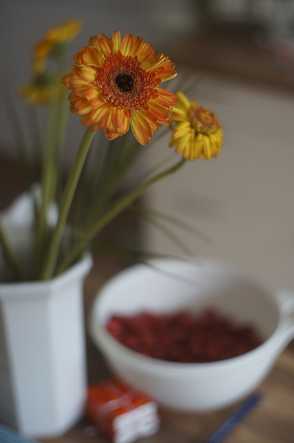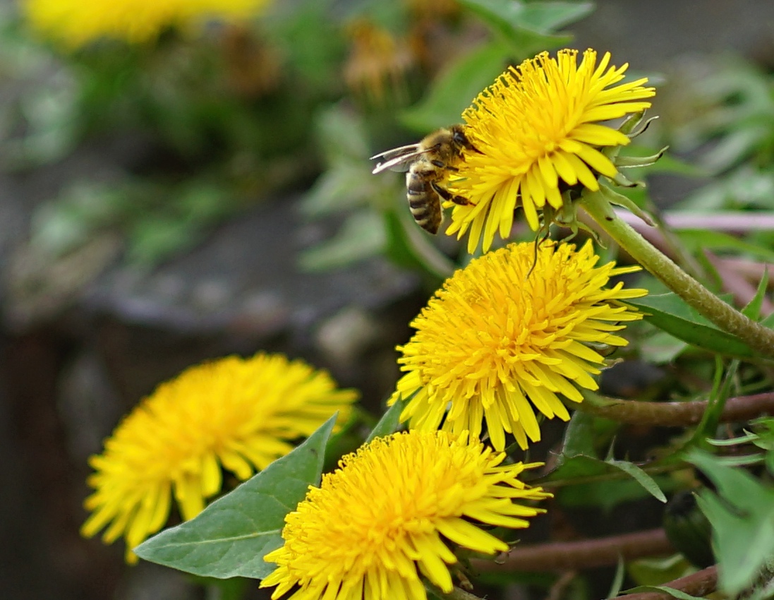 und noch ein Blümchen samt Biene. Erst das Ausgangsbild, dann der Crop.
