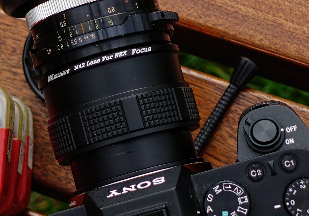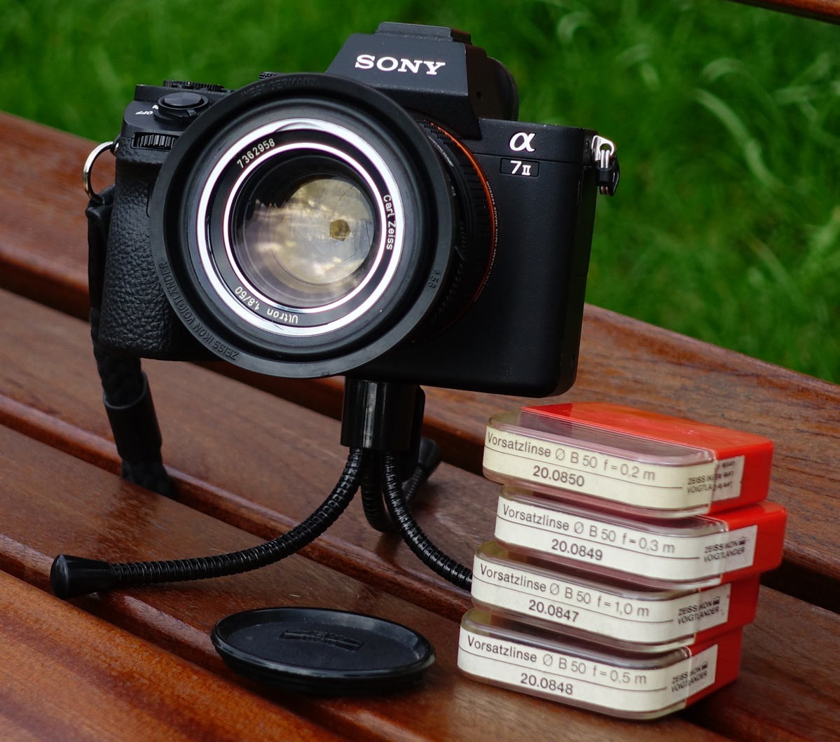 Ich benutze das Zeiss mit zwei Adaptern an der Sony A7II - manuell mit dem E-Mount/M42 Macro Helicoid von KeCay, der die Minimal-Fokus-Distanz