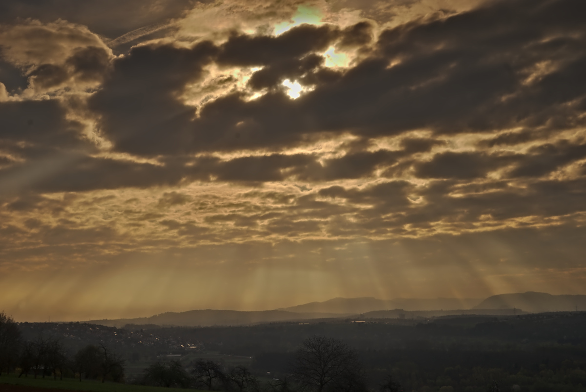 #1: Lichtstimmung heute Morgen. Blick über das dunstige Neckartal Richtung Plochingen