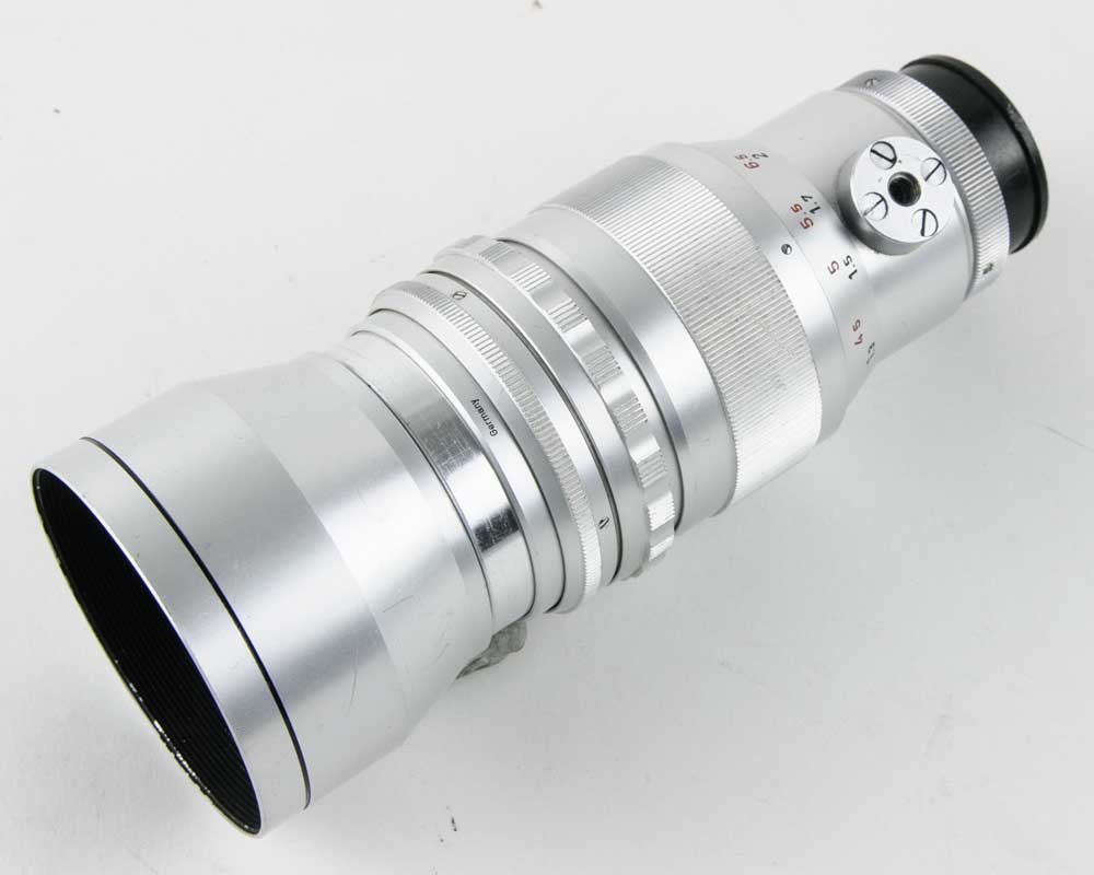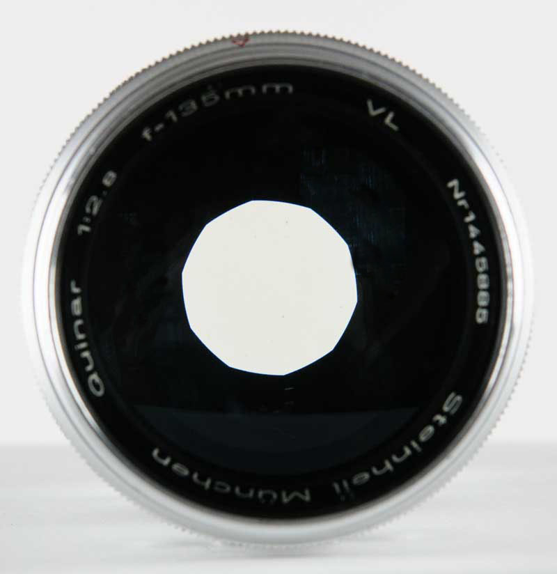 Der Objektivkopf des Steinheil München Quinar 2.8/135mm VL lässt sich abschrauben.
