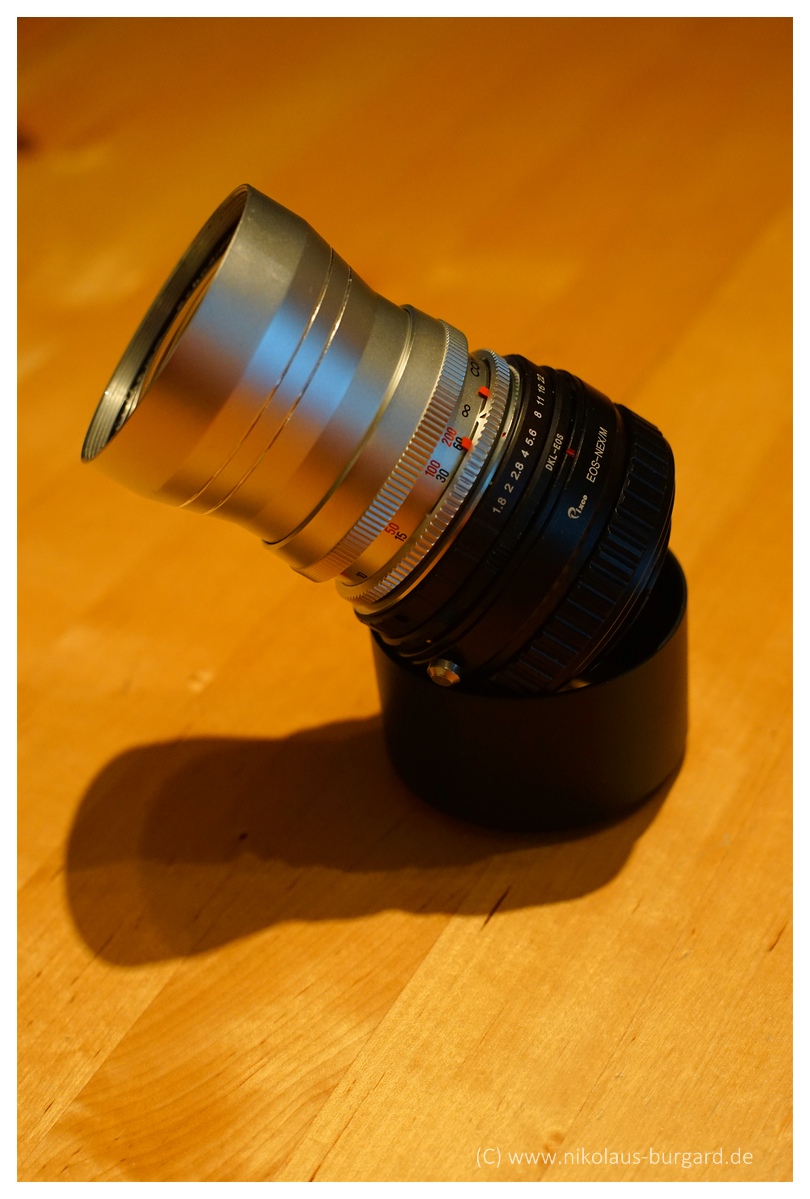 Ich habe mir also einen DKL-EOS-Adapter besorgt und einen EOS-Nex Helicoid-Adapter.
