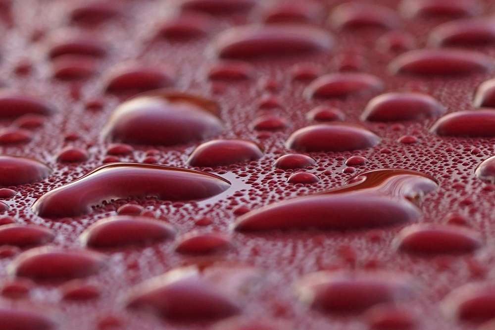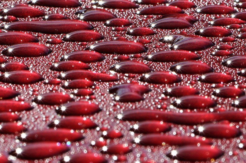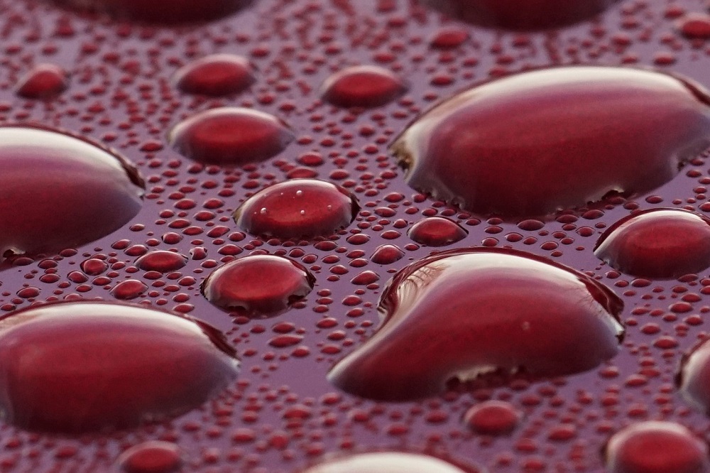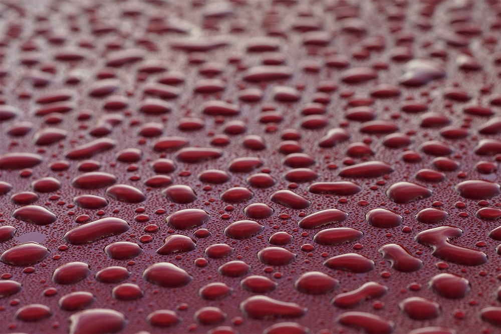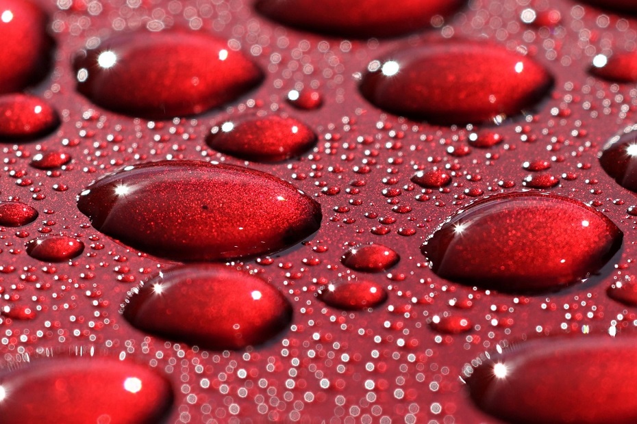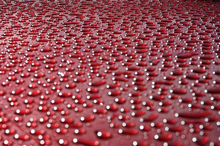 ein Metalliclack eines neuen Autos, übersäht mit Millionen von Tropfen ist eine tolle Spielwiese für die