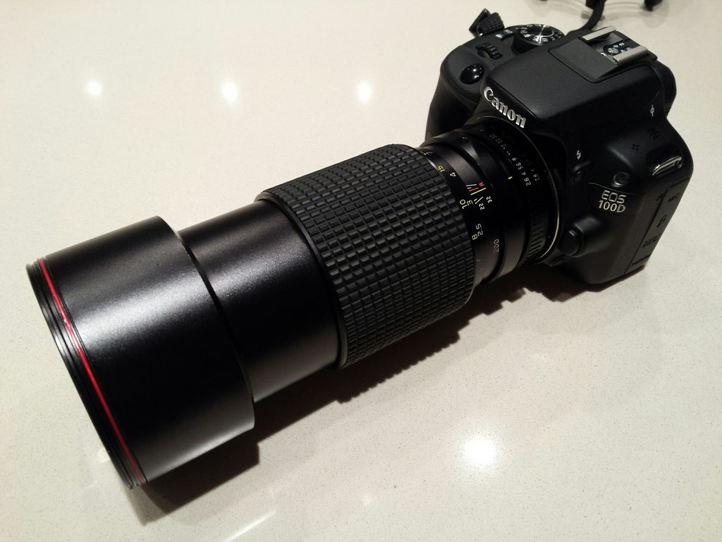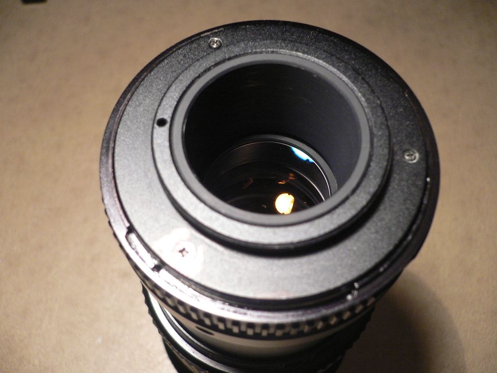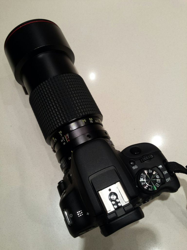 möglich es gleichzeitig an der Analogen Spotmatic UND mittels Adapter an EOS etc. zu nutzen. Lucky me, ein altes 135mm war bereit sein M42-Hinterteil mit Lichtfalle zu spenden, das zufällig passte.
