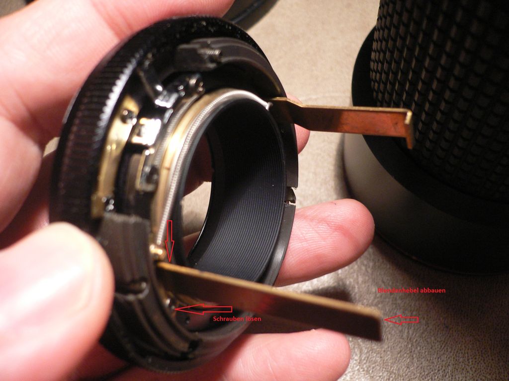 bei den Tokinas ist ein Umbau vergleichsweise einfach, da die Grundkonstruktion schon für verschiedene Anschlüsse vorbereitet ist. Außer einem Tokina Spenderobjektiv (die ja fast nichts kosten) mit z.B C/Y, M42, OM oder Pentax PK Bajonett braucht man nur ein bißchen Gehirnschmalz und geeignete Schraubendreher, um die Transplantation des Bajonetts und den Umbau der Blendensteuerung hinzubekommen.