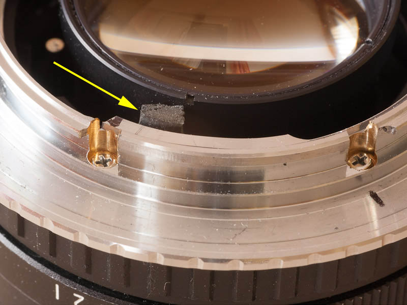 werden das er nicht am Adapter schleift. Weiters habe ich die beiden Hebel des Blendenmechanismus (siehe Pfeile)