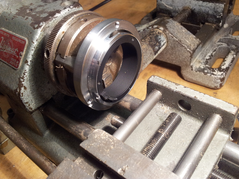 Den Adapter Habe ich eben Innen ausgedreht. Hat hervorragend funktioniert. Messing lässt sich noch einfacher bearbeiten als Alu auf der kleinen Unimat.
