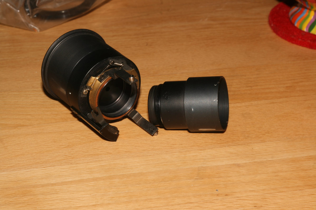 Insofern könnte es angehen, dass der Rücklinsen-Tubus in der gleichen Weise herausschraubbar ist. Das sollte sogar durch das Bajonett hindurch gelingen, denn der R-Tubus ist recht klein im Durchmesser.