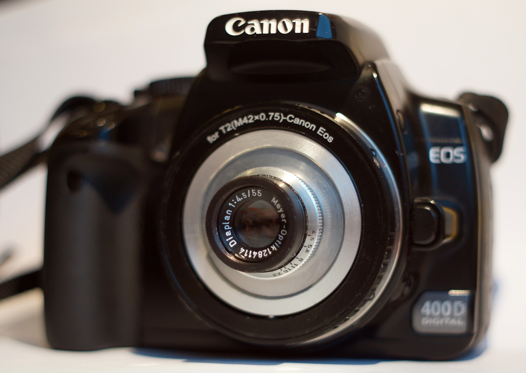 Auf diese Weise sind so gut wie alle Vergrößerungsobjektiv im Bereich um die 50-55mm mit kleineren Gewinde-Anschlüssen (=M25/M27/M30 oder M32.5) herum auch an der DSLR nutzbar.