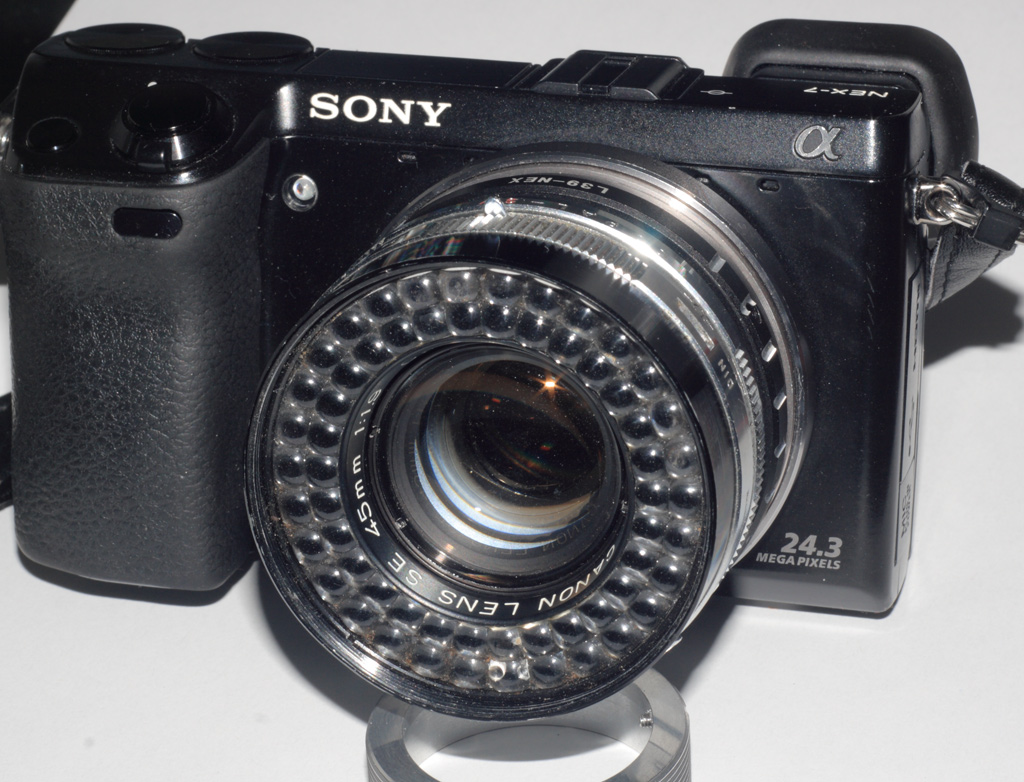 Für meine DSLR Kameras leistet es aber gute Dienste. Wo sonst irgendwelche Konstrukte mit einem M39 Adapter und eingeschraubtem V-Objektiv nur unzureichend funktionieren, werden die Objektive im 50mm Bereich auch halbwegs sinnvoll nutzbar.