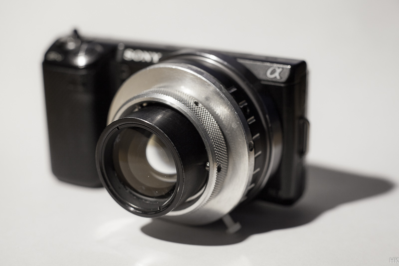 Auf jeden Fall bekommt man auf diese Weise ein winzig kleines extrem lichtstarkes "Normalobjektiv" an die NEX und hat dabei den vollen Komfort der VNEX-Fokussierschnecke. Fokussieren lässt es sich auf diese Weise übrigens von ca. 0,25 m bis unendlich. Und so sieht das aus: