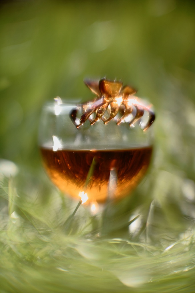 Hier in dieser Szene war der Sonnenstand bei ca. 2 Uhr zur Objektivachse und das Objektiv an der Naheinstellgrenze.. in Ermangelung einer Streulichtblende, habe ich die durch die Sonne in der Optik entstehenden Reflektionen mit der "übergelegten" Hand abgehalten/ die Sonne abgeschattet..
