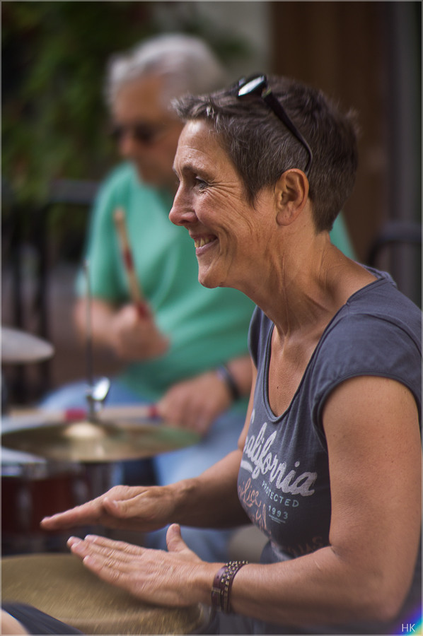 während des Gigs auf einem Schemel, also ein relativ statisches Motiv...