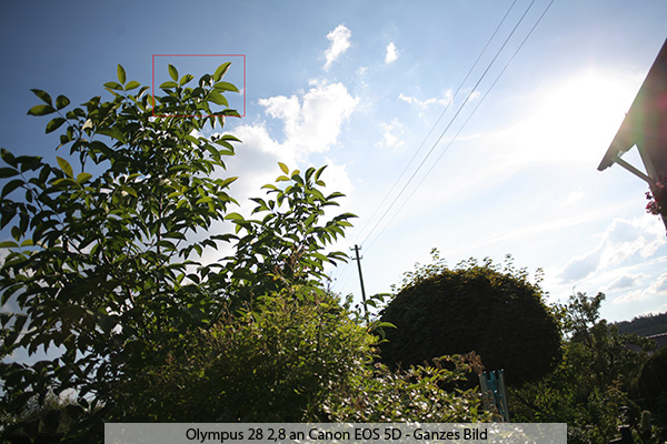 Hier der Unterschied Hamimex 2,8/28 - Olympus 2,8/28 mit der Sonne direkt im Bild (beide bei f2,8):
