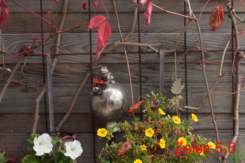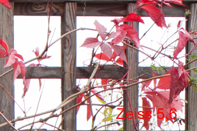Bei Blende 5,6 wendet sich das Blatt und das Zeiss bildet eine Nuance schärfer ab.