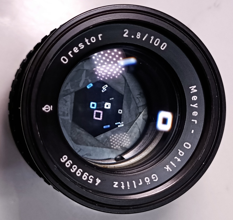 Mein optisch sehr schönes Orestor mit Springblende hat mich herausgefordert: Die Blende funktionierte lagenabhängig. Mit der Front nach unten zog sie meistens (!) klaglos auf und zu, auch in Normalstellung, also ca. waagrecht war das so. Aber sobald ich das Objektiv etwas über die Waagrechte nach oben richtete, hing die Blende irgendwo bei 8-11 und öffnete sich nur wieder vollständig durch Drehen des Blendenrings auf 2.8. Alles Suchen und recherchieren brachte keine Antwort, warum das so sein könnte. Öl hab ich jedenfals keines gesehen. Also habe ich mich an das Abenteuer gewagt, die Blende einmal komplett zu prüfen und zu säubern. Dazu musste natürlich alles raus, inkl. der Lamellen. Wirklich gefunden habe ich am Ende nichts. Aber eben einmal alles schön mit Feuerzeug-Benzin und Wattestäbchen gereinigt - da waren dann trotz optisch sauberer Lamellen einige Wattestäbchen schwarz, und vielleicht hat das ja schon genügt, um nicht richtig zu funktionieren. Aber dann - es gibt echt wenig, was das Gefühl toppen kann, nach dem übel fummeligen Einfädeln dieser 6 Blendenlamellen (gefühlt hab ich das wohl 53 mal durchexerziert :rolleyes:), dem Montieren aller Schrauben und Linsen, dann auf die Blendentaste zu drücken und: ZACK! :peace: Das Dingen fluppt wie neu :Muscle:. Einfach Wahnsinn. Nun hab ich wieder ein optisch wie technisch 1A funktionierendes Orestor 2.8/100.