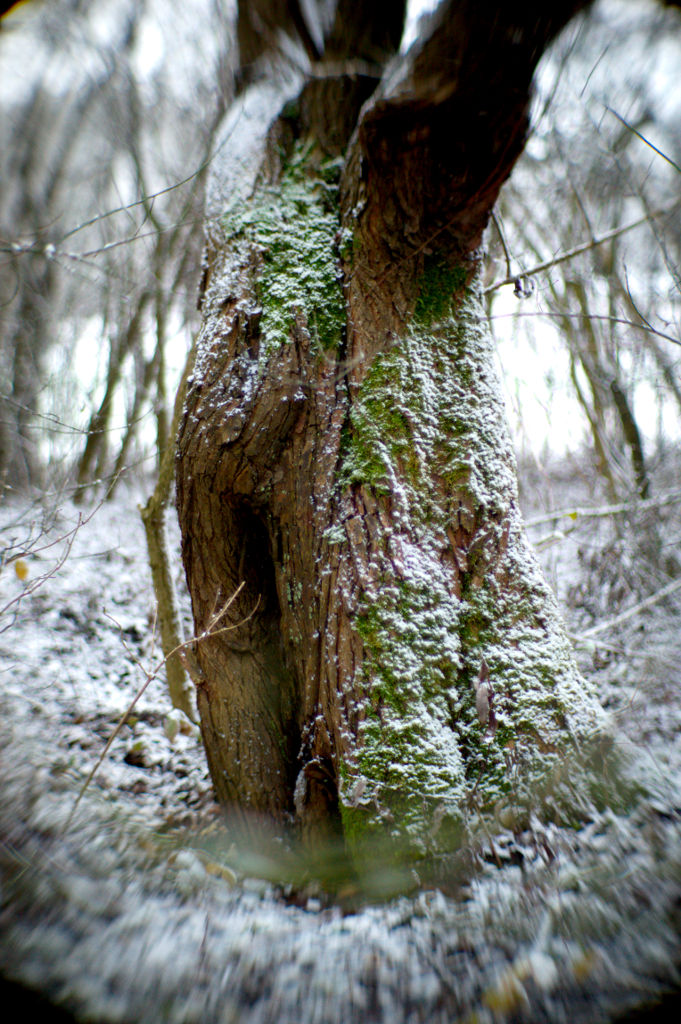 #7: Bemooster Baum im Schneetreiben