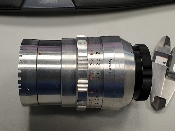 An der Blende auf der Rückseite sitzt eine kleine Madensschraube M1,7 mit Spitze, welche den Blendenkorpus mit dem hinteren breiten Ring klemmt, so dass dieser nicht abgedreht werden kann.