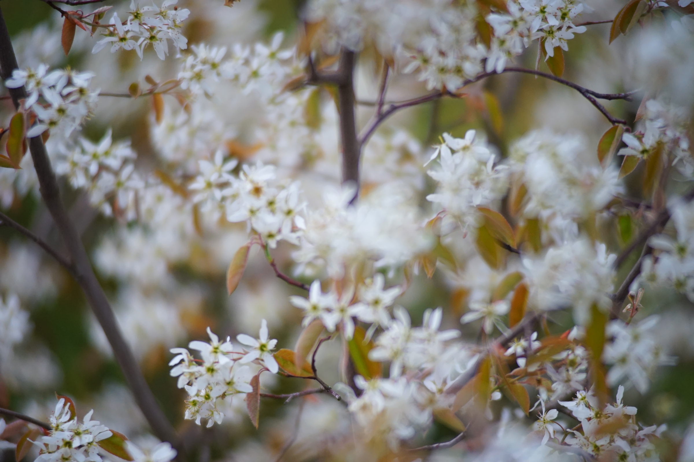 Die Felsenbirne bei f/2.8 und 120mm in verschiedenen Fokusebenen. Einen Stack habe ich versucht, das taugt aber nicht.