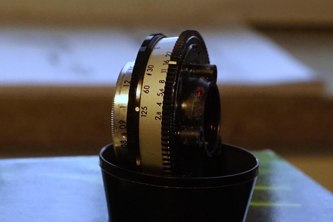 Ich habe es auf einem kleinen M42 Zwischenring montiert und das ganze in einen kurzen Helicoid (im eingefahrenen Zustand 15mm) geschraubt. Das schwarze geriffelte Platikteil