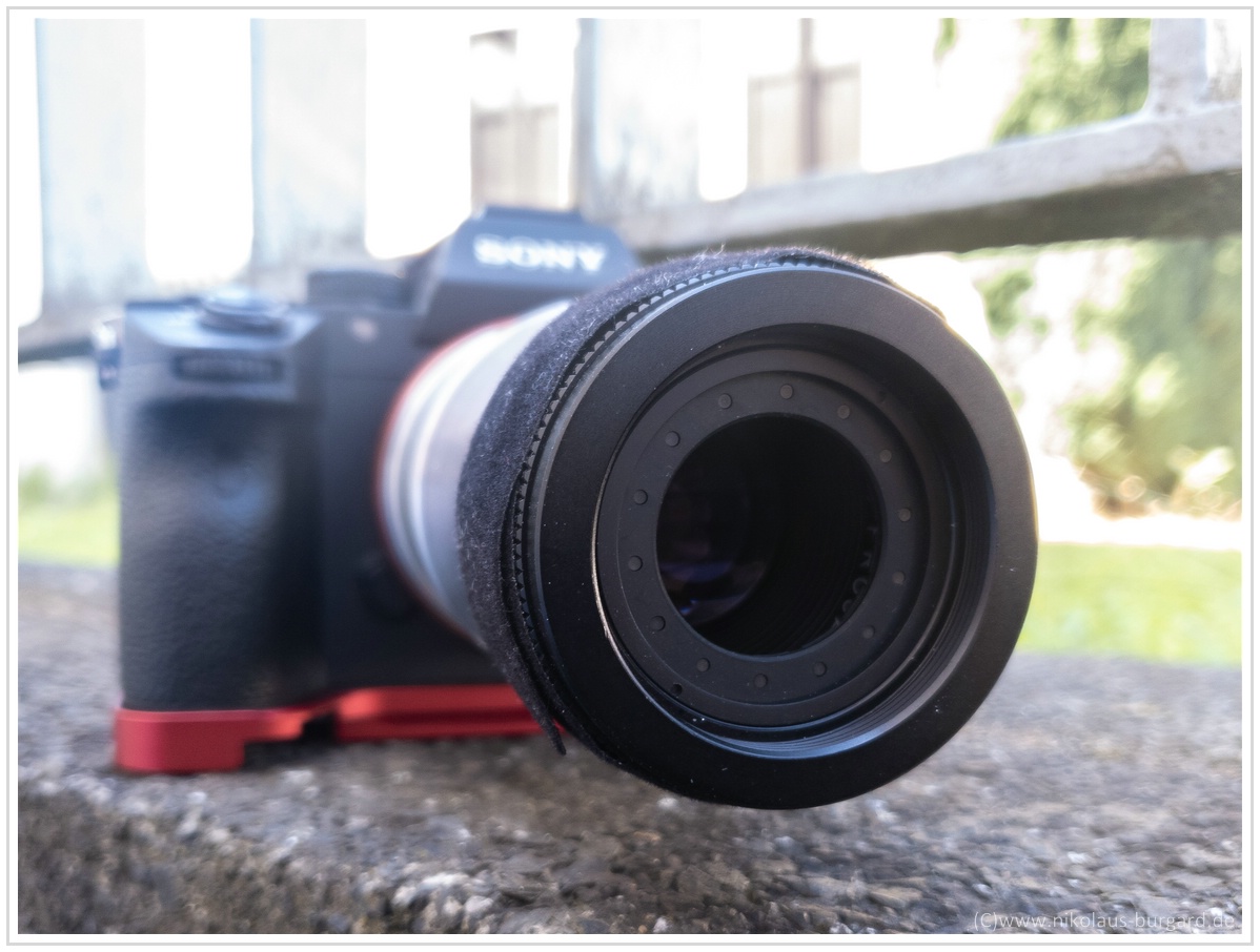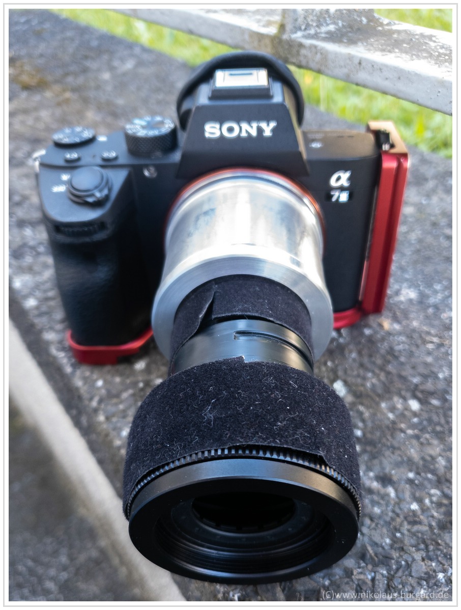 ich habe doch noch etwas Arbeit in das Projekt reingesteckt und das Objektiv festgemacht mit einem Teil von einem Zoomobjektiv.