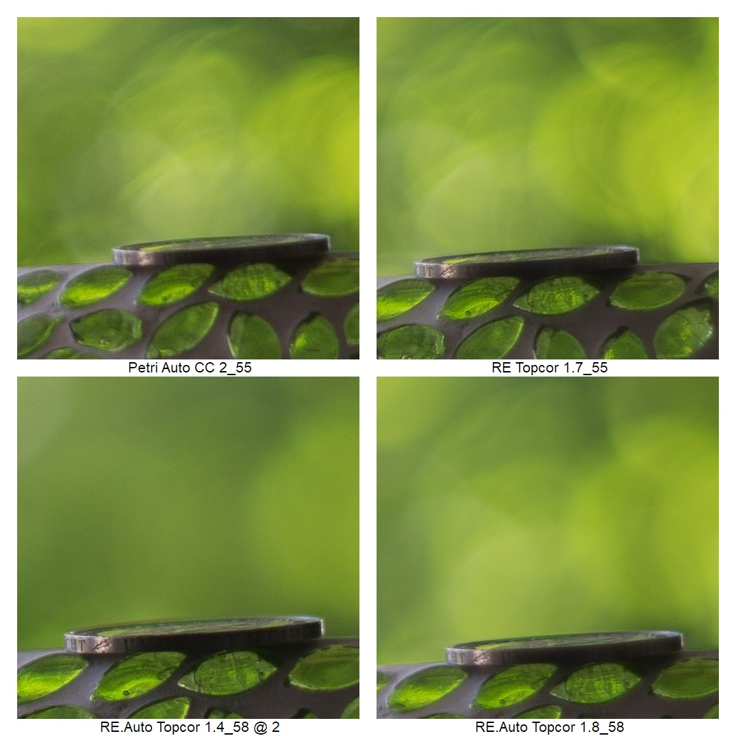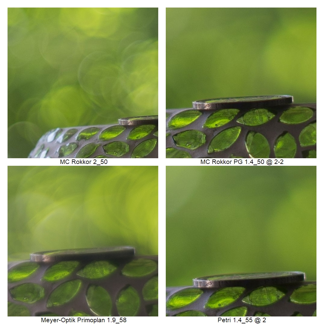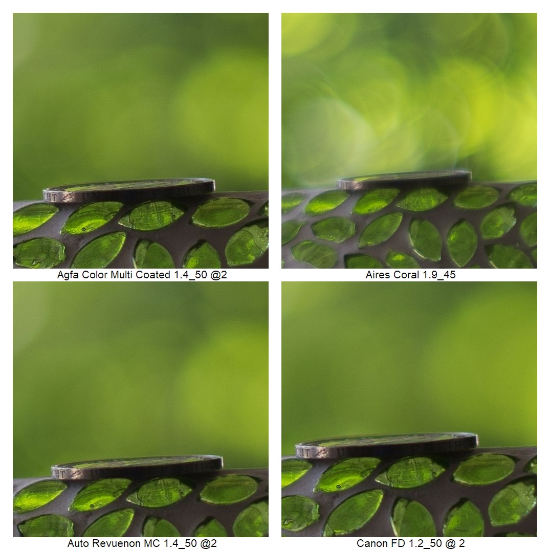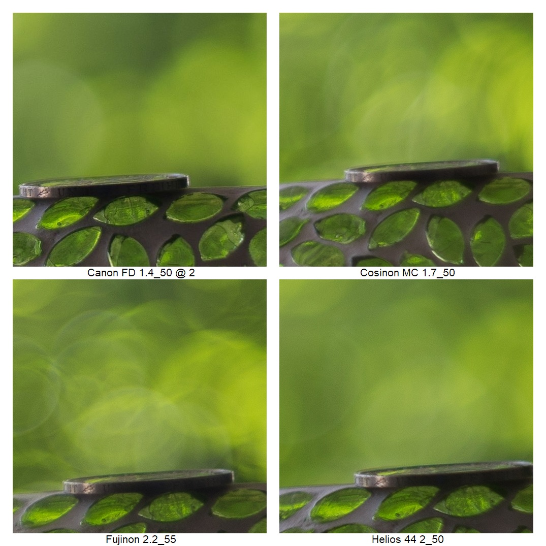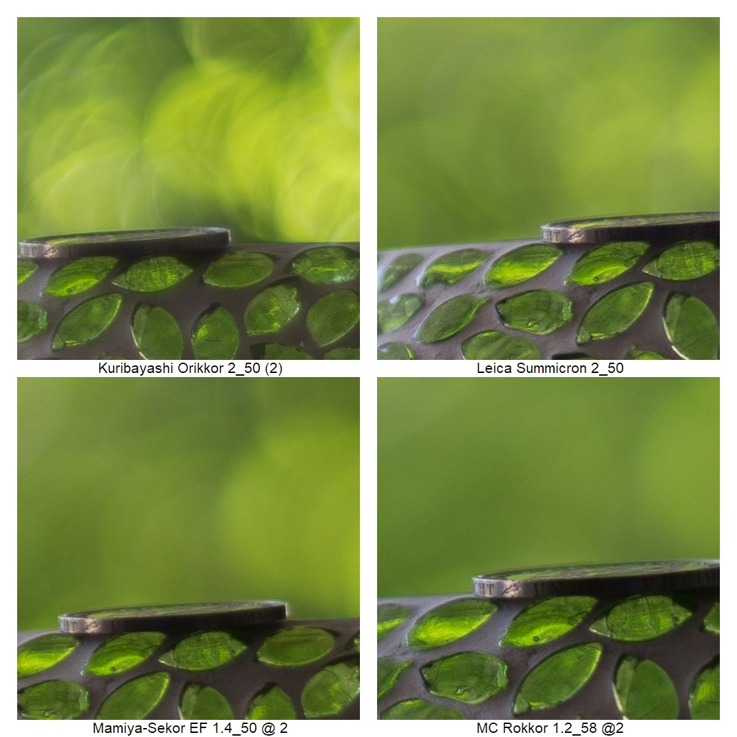 Wie vermutlich dem Kenner schon aufgefallen ist, ich musste die Position der Kamera ein paarmal anpassen (ich weiß: suboptimal), weil z.B. die Schneider DKL Objektive eine so schlechte Naheinstellgrenze haben. Daher rührt auch der Größenunterschied bei der Schärfebeurteilung. Mir ist klar, dass das nicht ganz fair ist. Wenn man es aber weiß, kann man vielleicht trotzdem einordnen, wie gut das jeweilige Objektiv die Münze einfangen konnte.